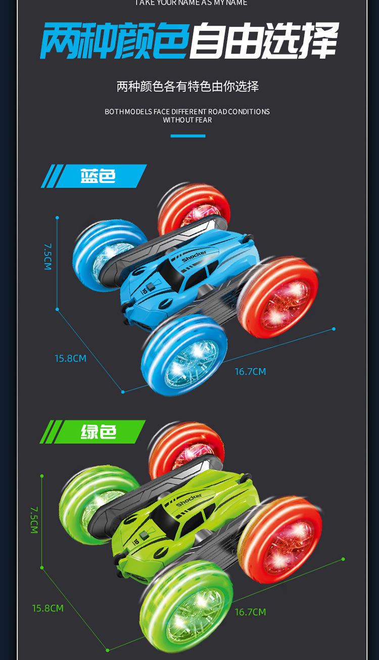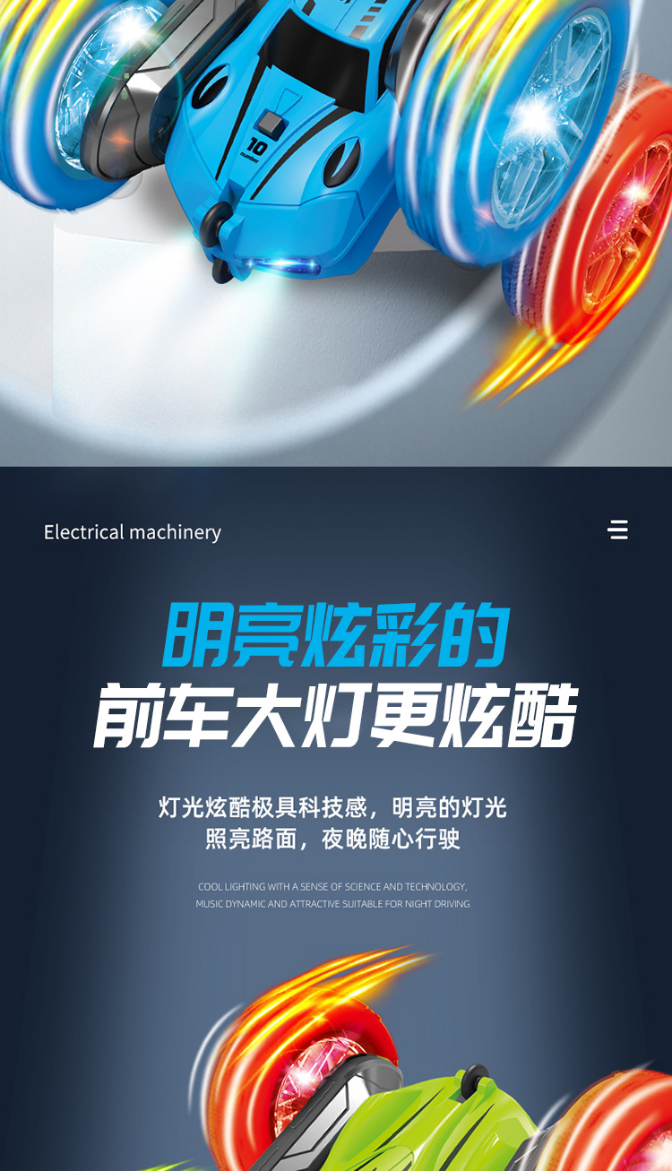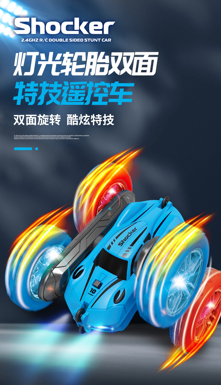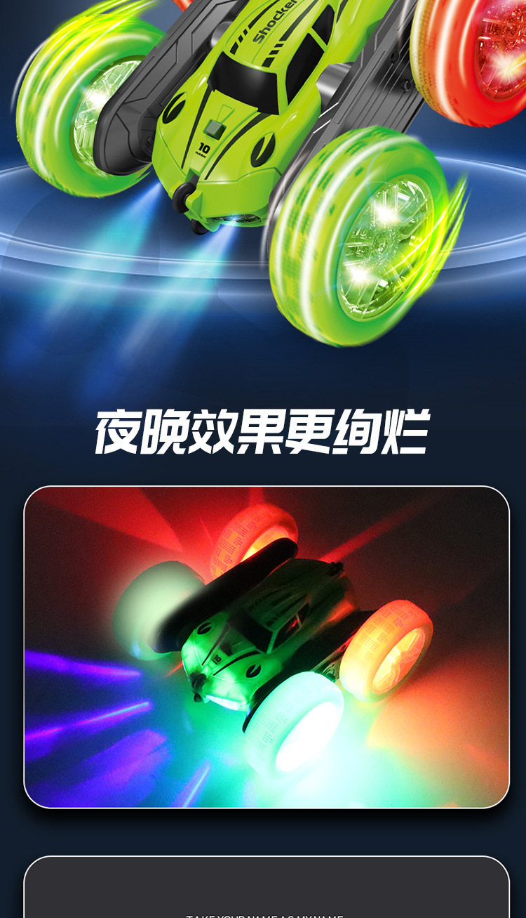 Transfronterizos niños trucos de control remoto iluminación colorida camión volcado de control remoto doble cara coche de juguete de control remoto para niños y niñas