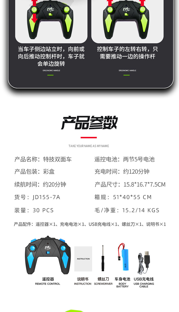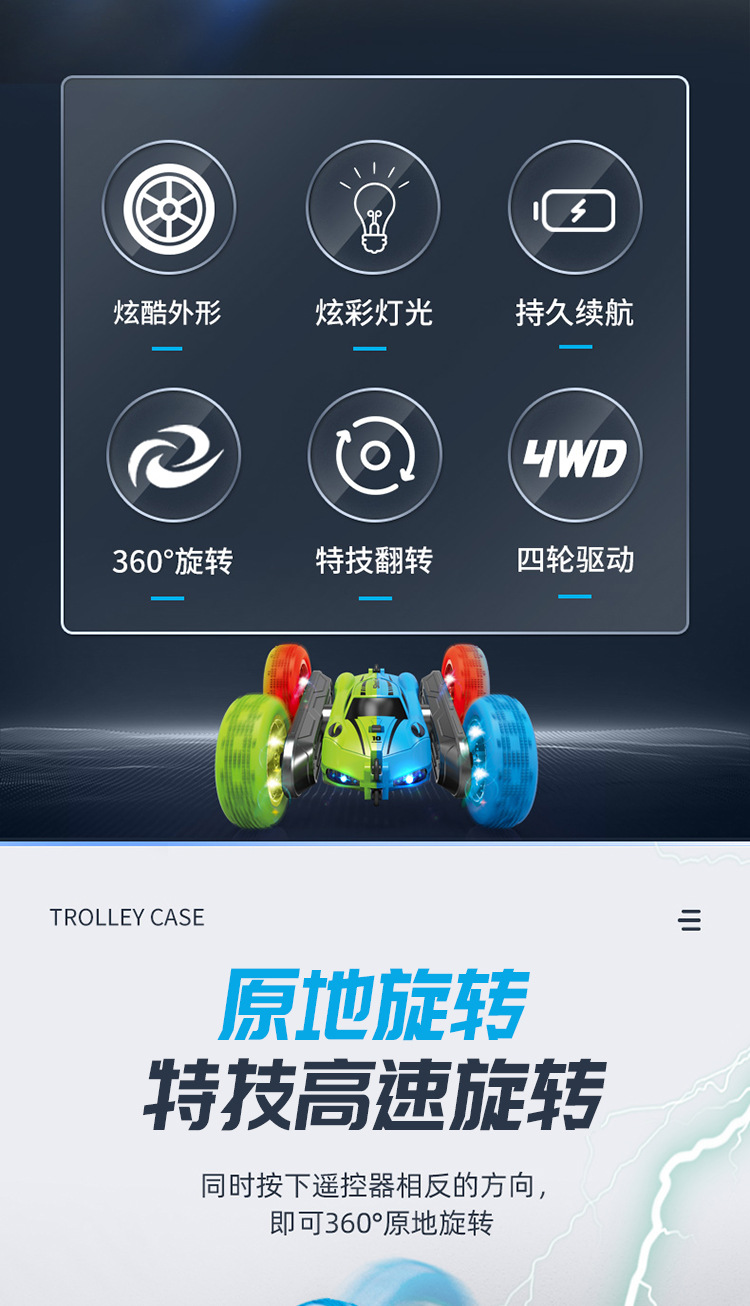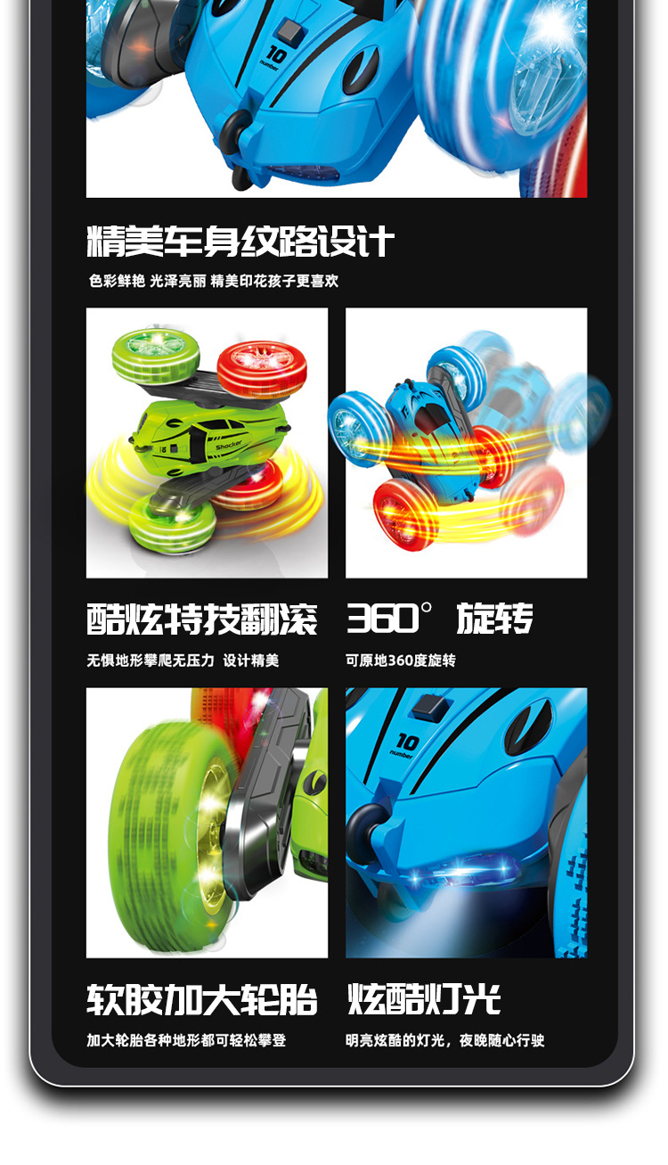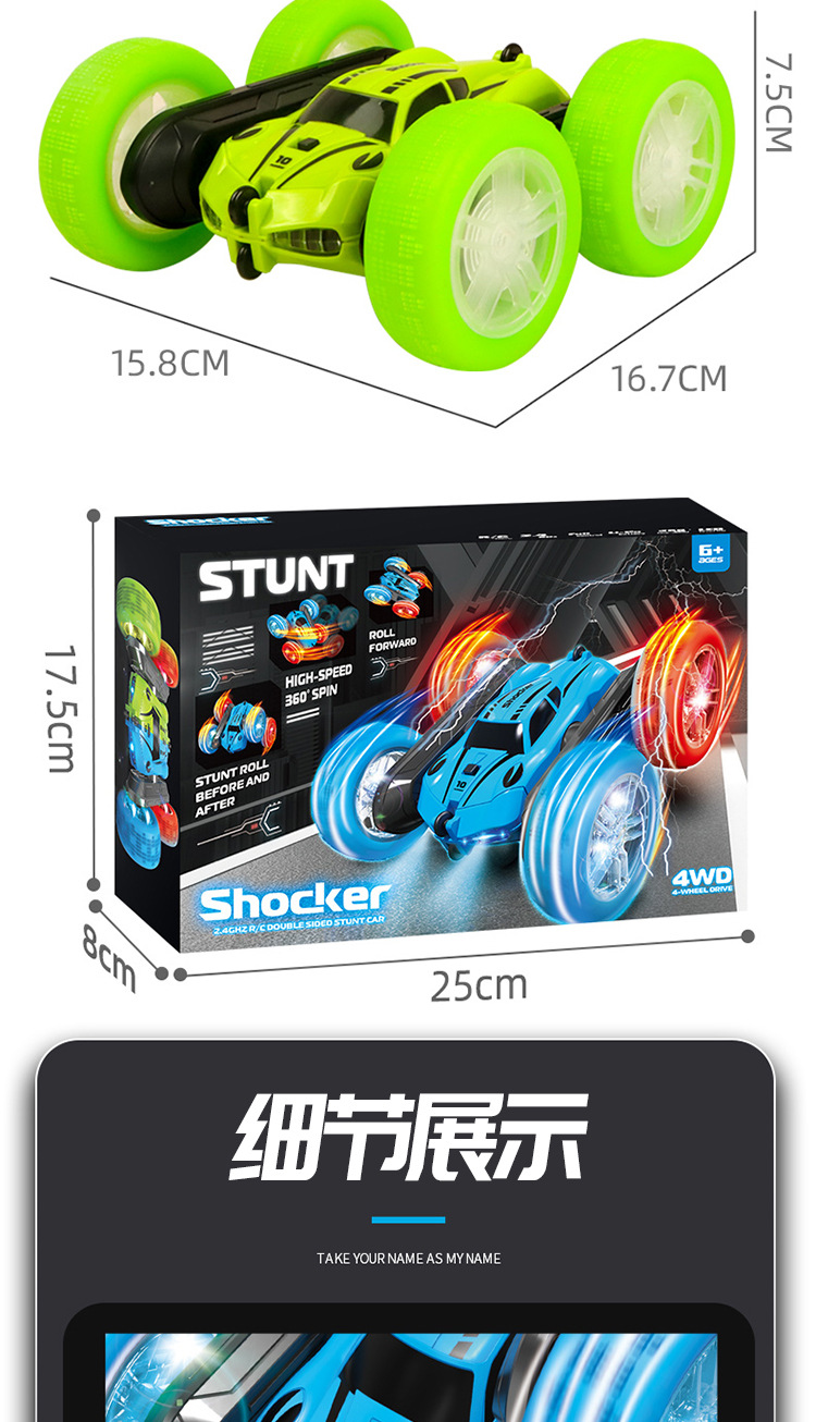 Transfronterizos niños trucos de control remoto iluminación colorida camión volcado de control remoto doble cara coche de juguete de control remoto para niños y niñas