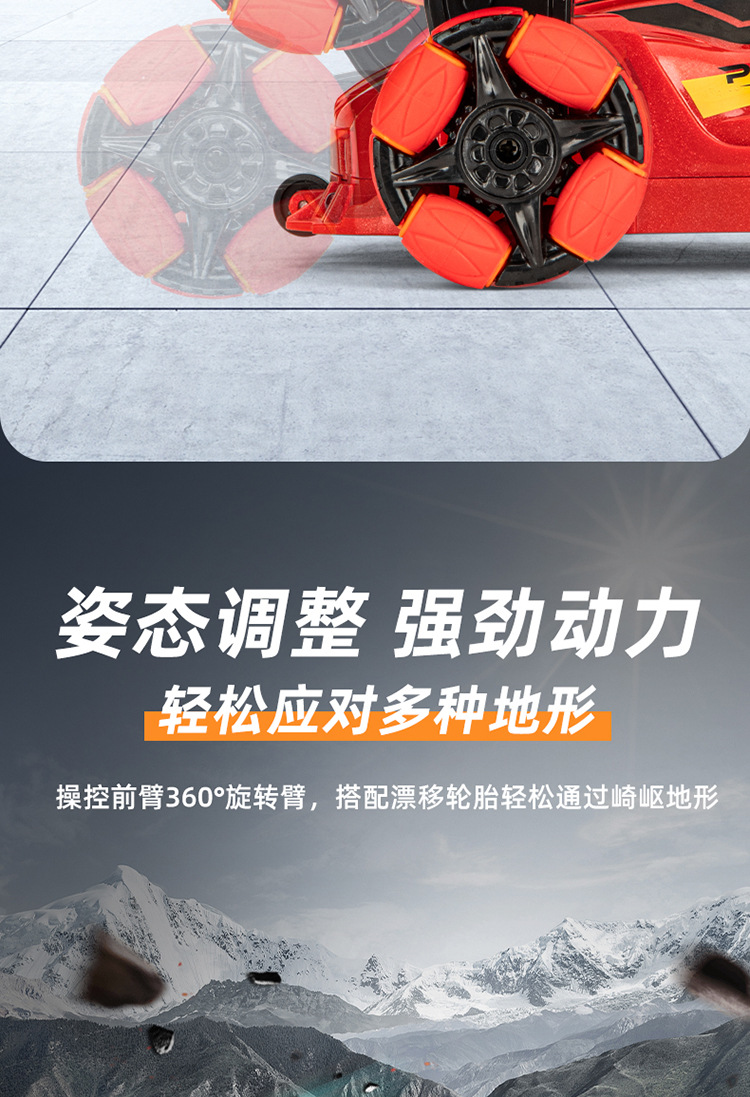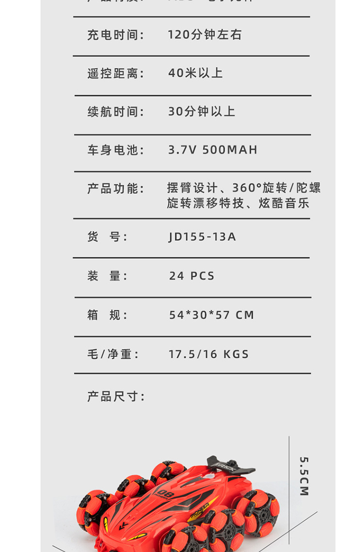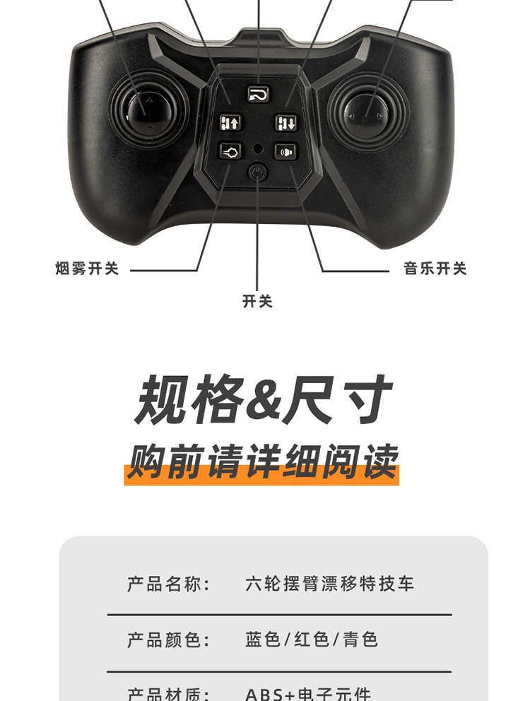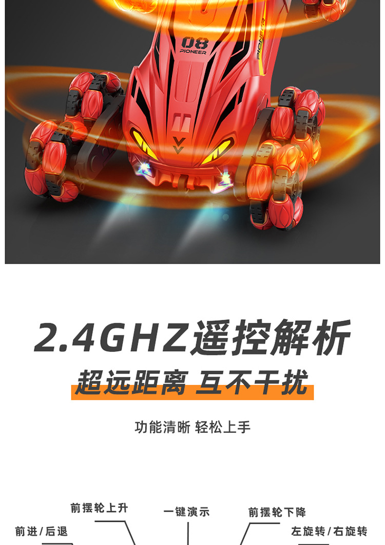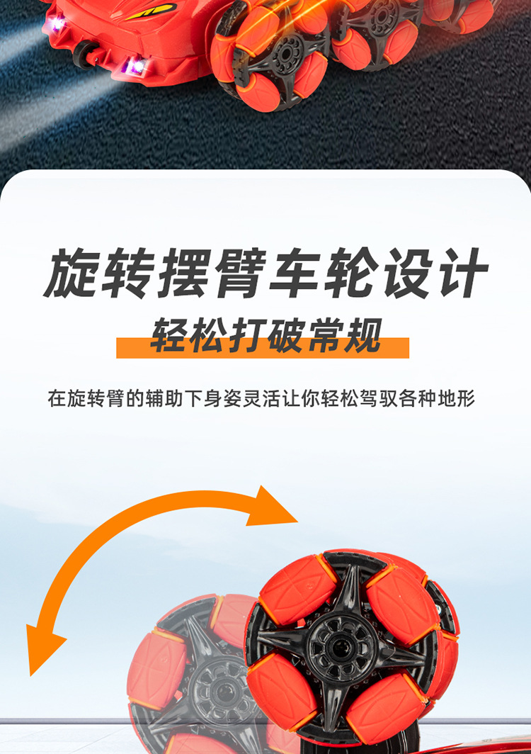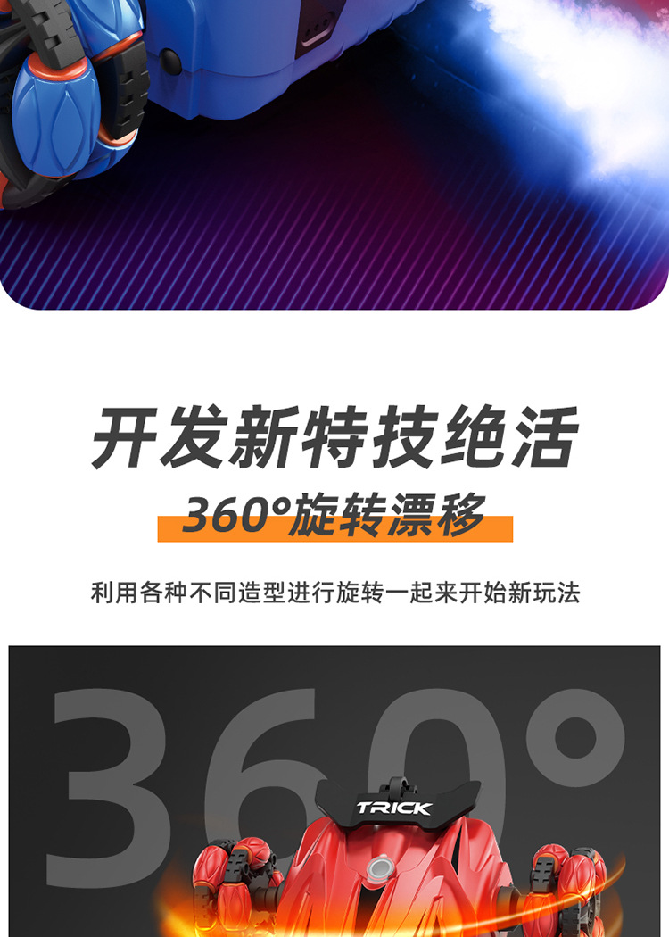Nuevos productos transfronterizos spray drift truco coche de control remoto música de color brillante iluminación de seis ruedas de control remoto coche de deformación juguetes para niños