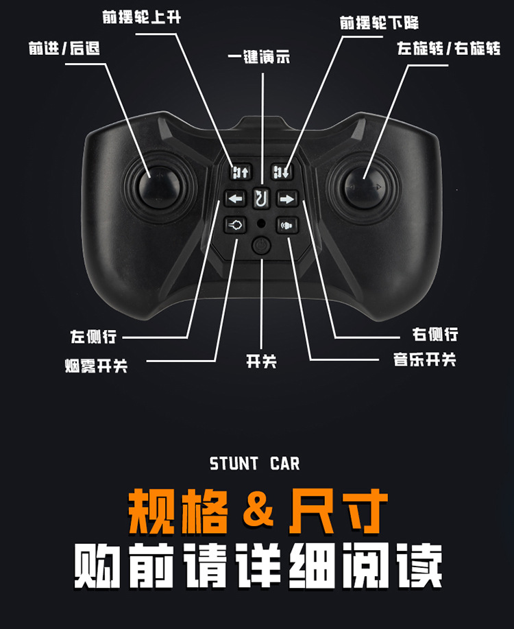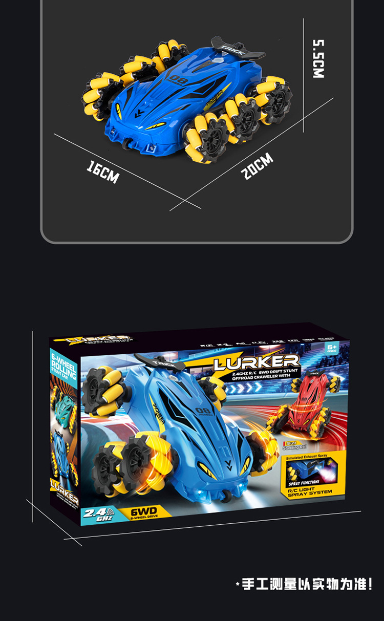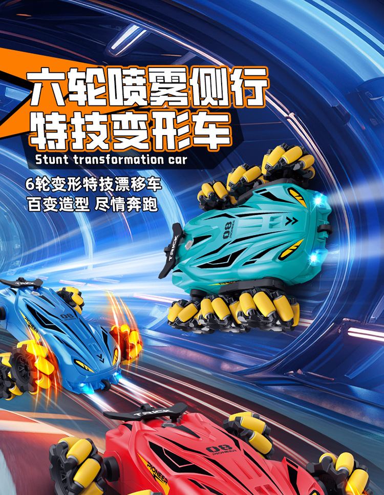 Niños de seis ruedas lateral control remoto juguetes de coche de carreras de cuatro ruedas a la deriva juguetes de niños trucos de spray