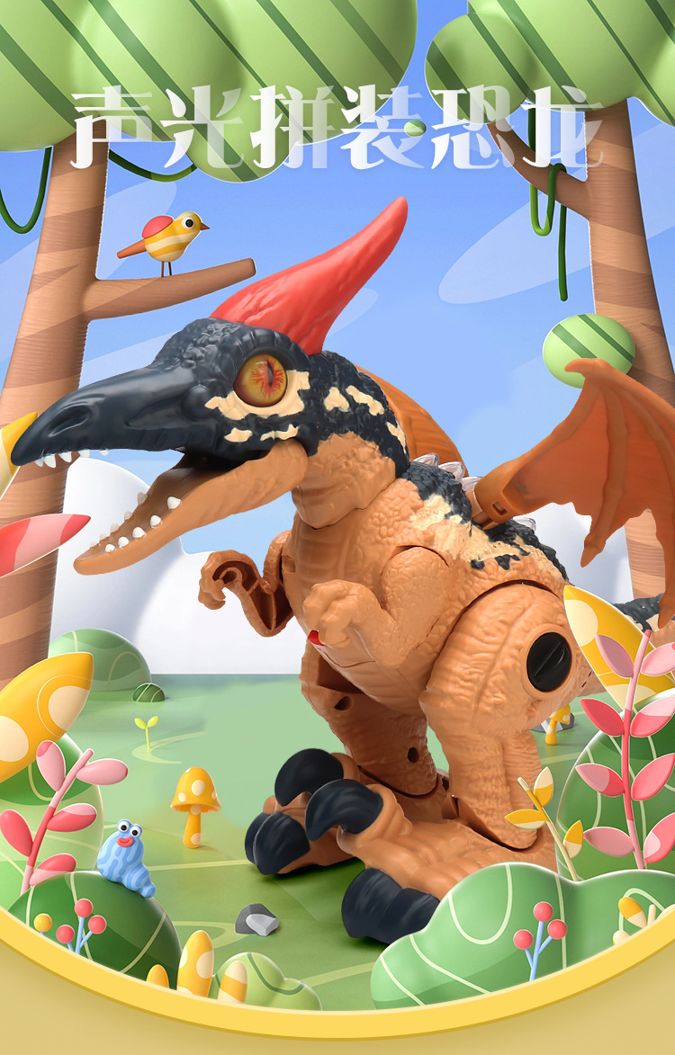 Los niños eléctricos sonido y luz dinosaurio modelo de simulación pterosaurus automático caminar desmontaje juguete dinosaurio puesto venta al por mayor caliente