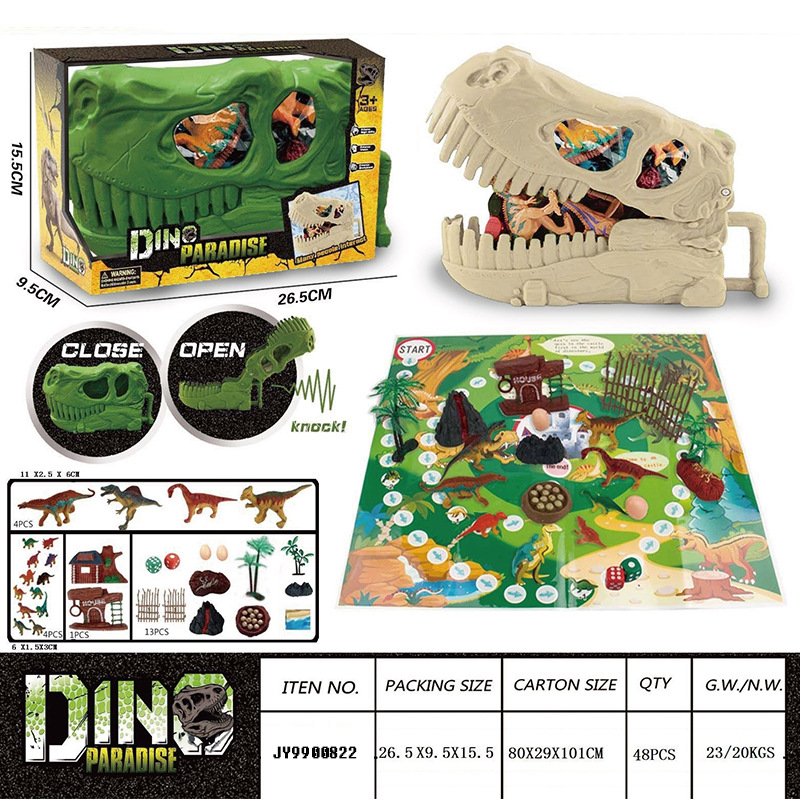 Esqueleto dinosaurio cabeza caja de almacenamiento Tyrannosaurus Rex esqueleto dinosaurio cabeza modelo juguete escena juego con dibujos