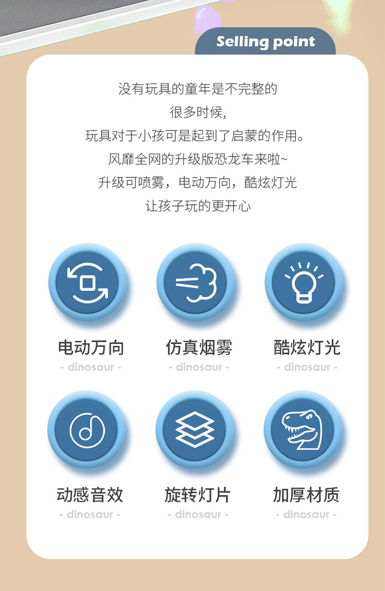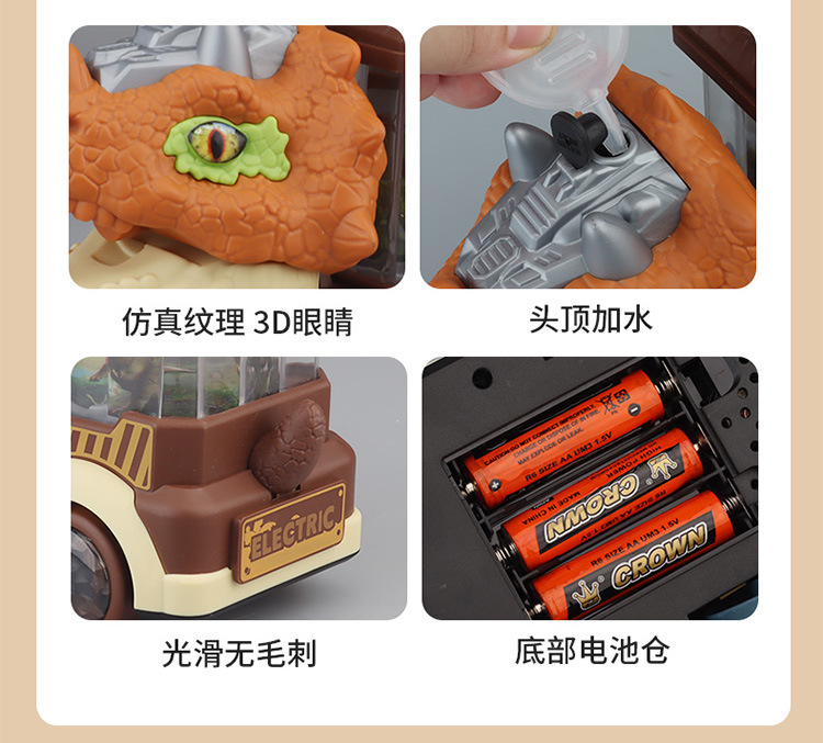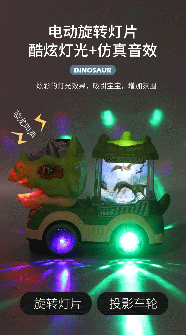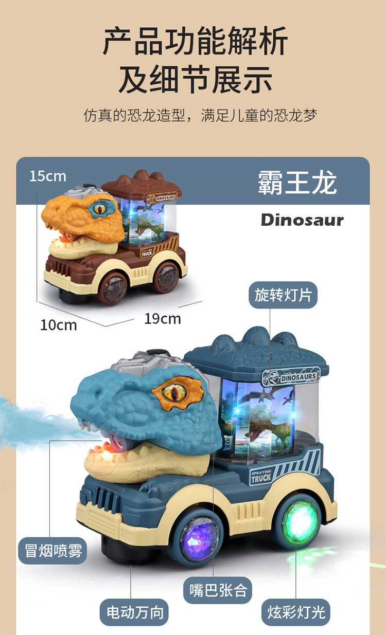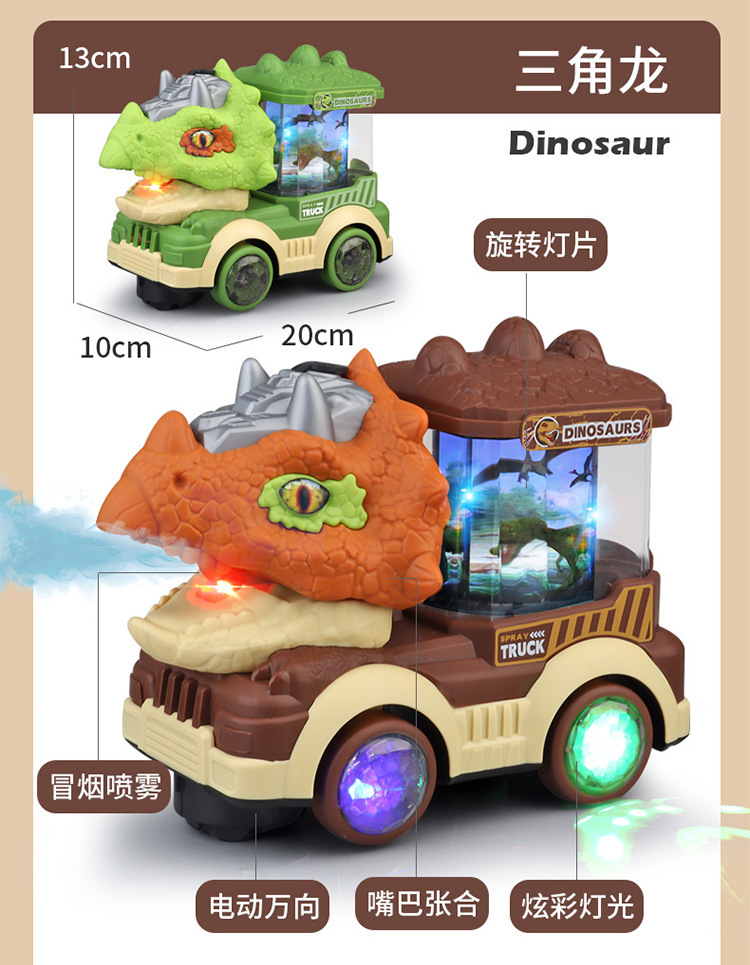 Eléctrico Universal aerosol dinosaurio coche de juguete Música luz giratoria pieza de luz Tyrannosaurus Triceratops simulación dinosaurio