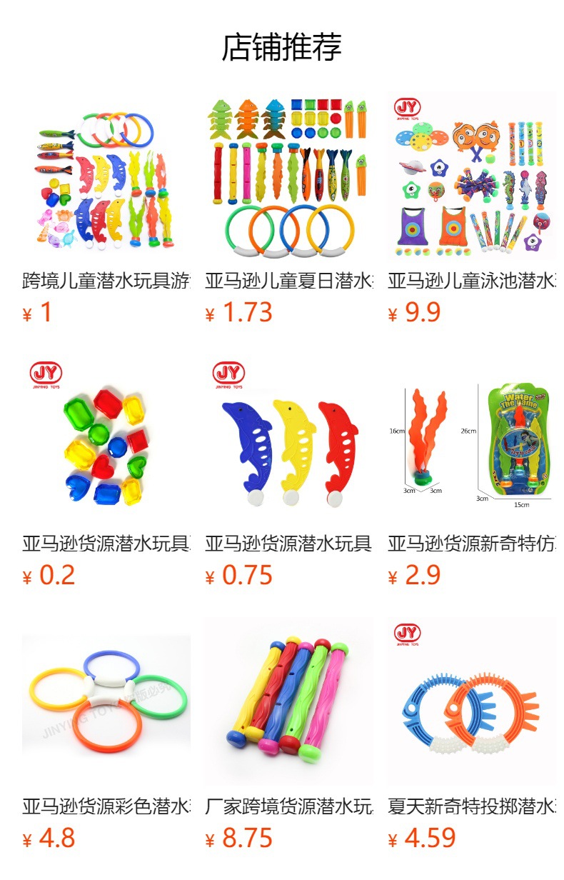 Juguetes de buceo transfronterizos Piscina al aire libre para niños Búsqueda del tesoro Buceo Peces y algas Torpedo Gemas Juego de juguetes acuáticos