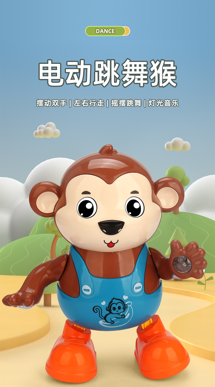 Tiktok mismo canto eléctrico bailando pequeño mono música luz columpio alrededor lindo animal muñeca eléctrica