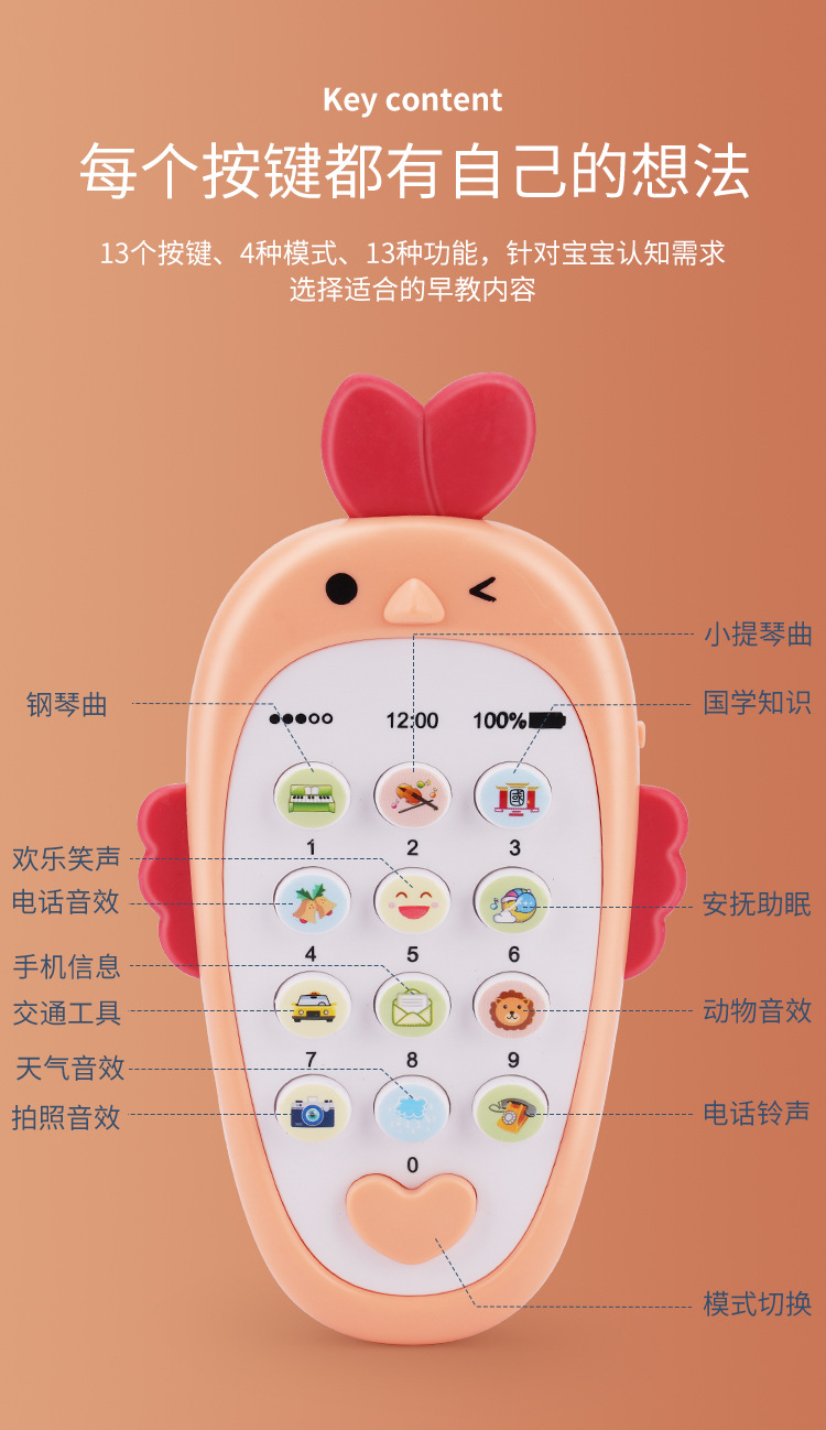 Teléfono móvil de los niños del bebé juguete educativo simulación música educación temprana comodidad 1 a 3 años bebé mordedor