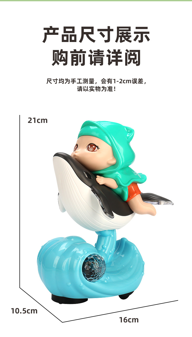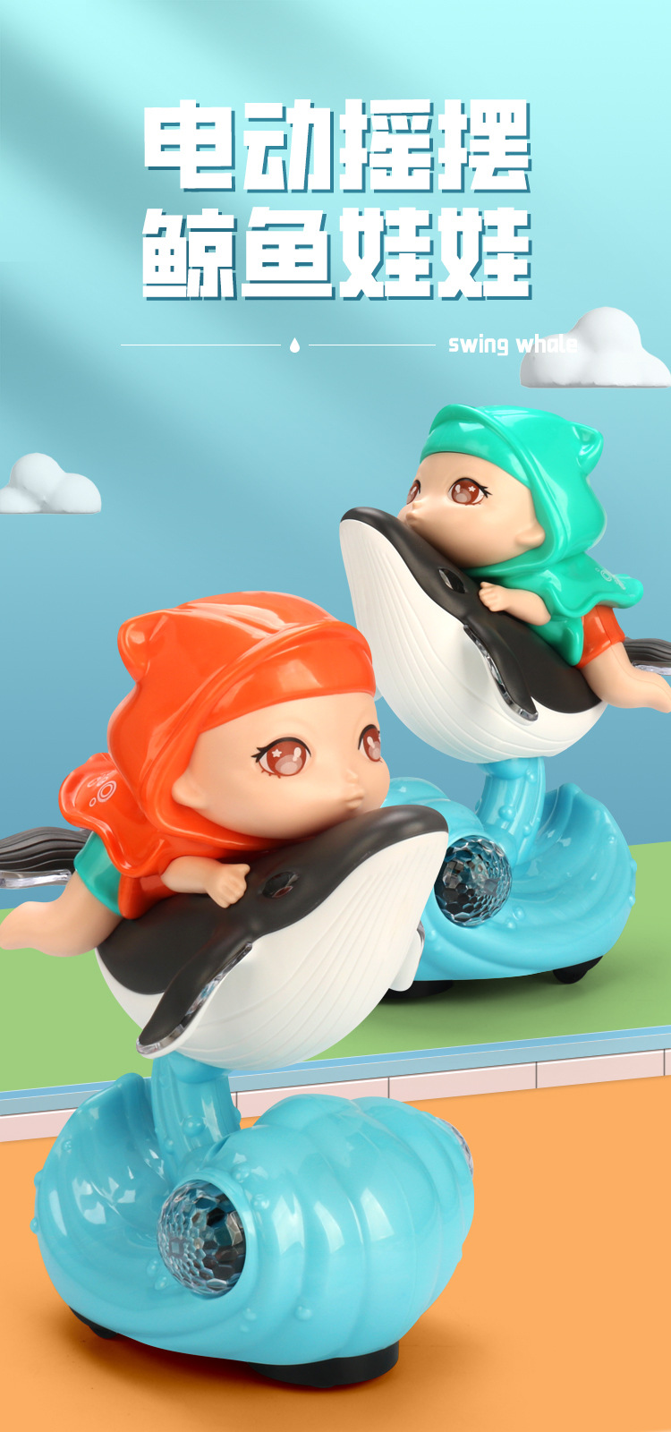 Tiktok mismo eléctrico universal de dibujos animados muñeca oscilación pequeña ballena luz música juguete los niños puesto al por mayor