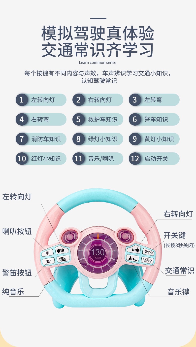 Tiktok niños volante simulador conducción bebé Educativo Educación Temprana juguete con música ligera narración de historias
