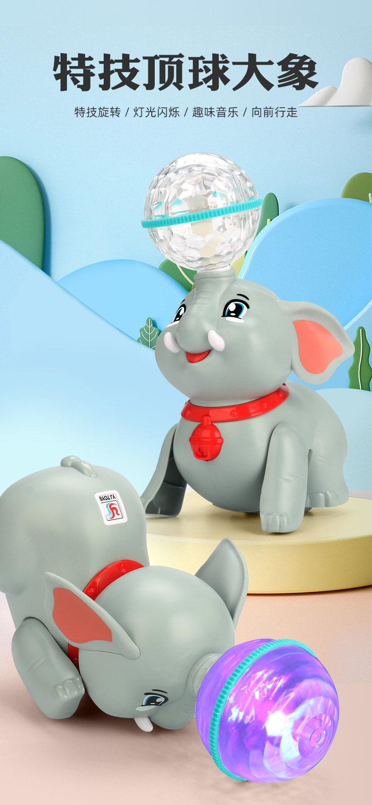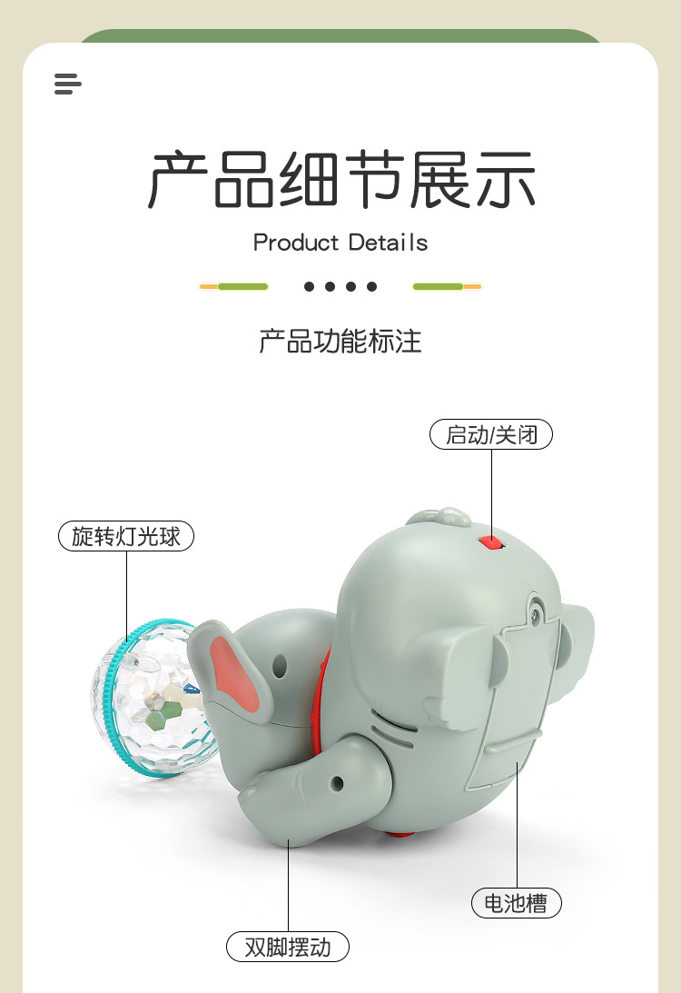 Tiktok mismo eléctrico Stunt cúpula elefante música luz giratoria sueño bola de luz juguete para niños al por mayor