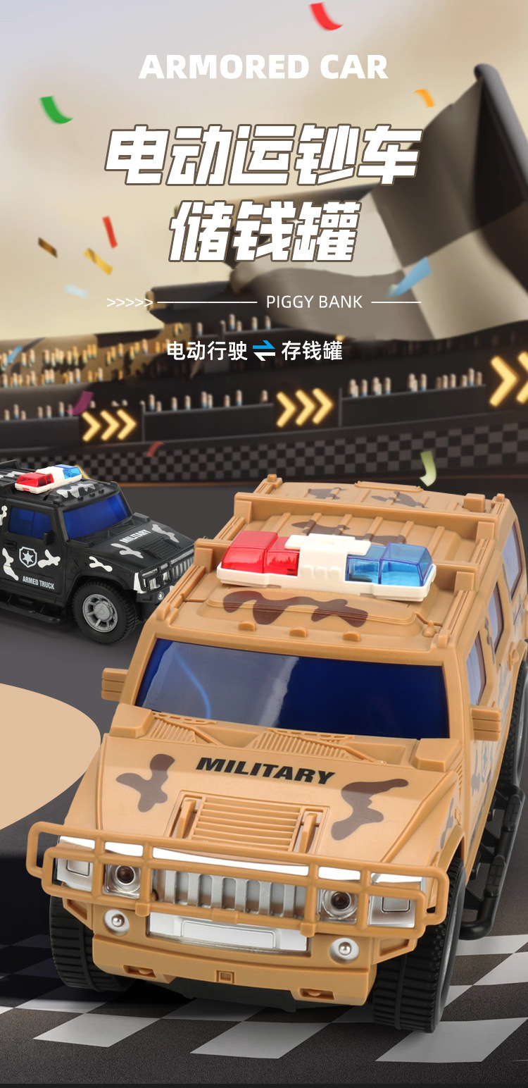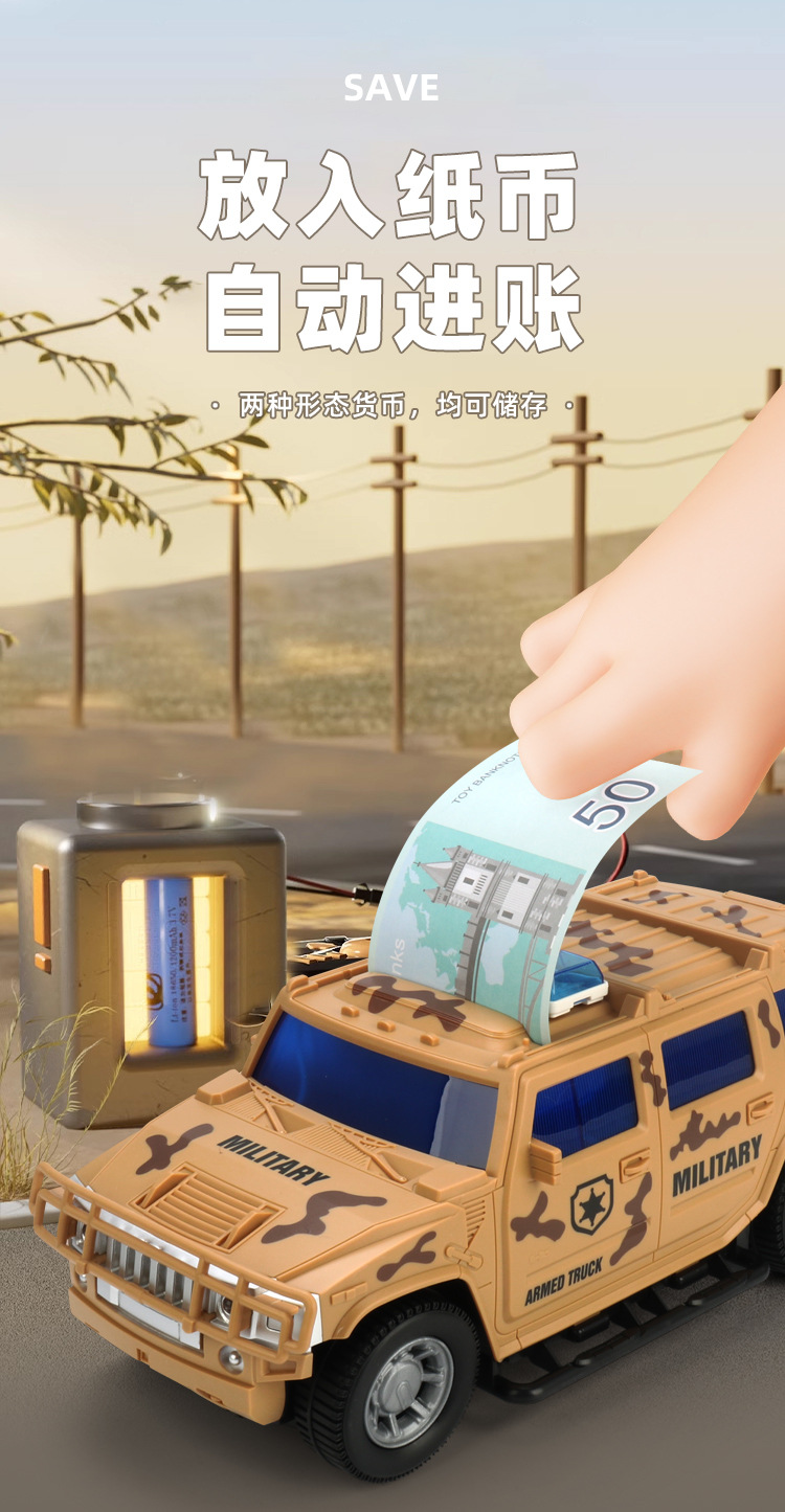 Cross-border Electric Universal efectivo camión alcancía automático rollo de dinero moneda camuflaje Humvee off-road vehículo alcancía al por mayor