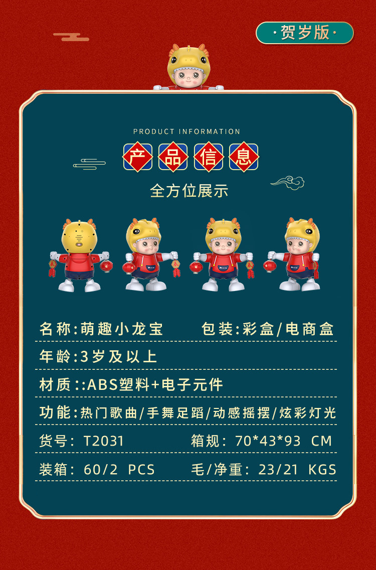 Tiktok mismo estilo bailando xiaolongbao swing música ligera robot regalo de Año Nuevo juguetes para niños al por mayor