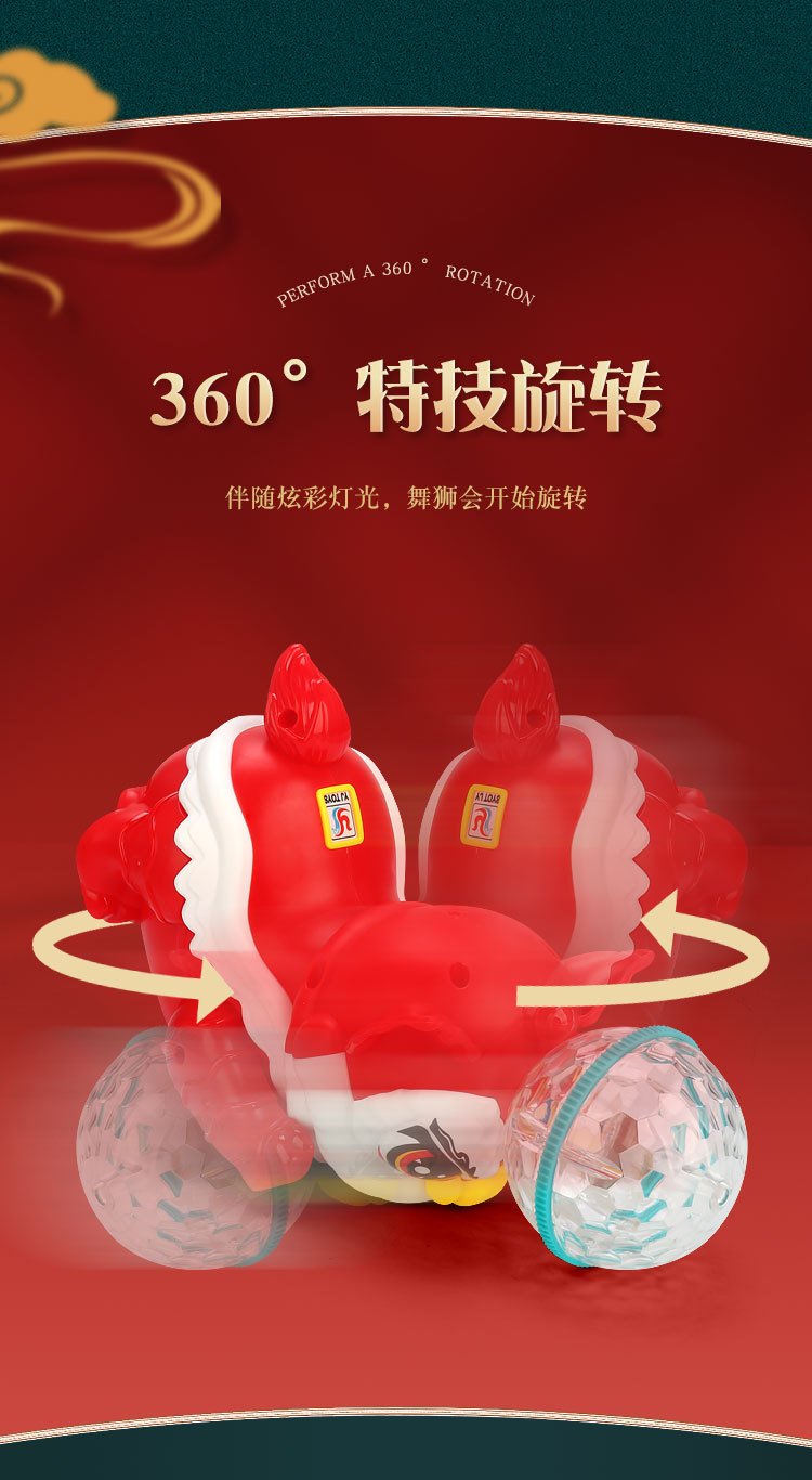 Tiktok mismo estilo nacional moda Stunt Top Ball Lion Dance rotating 360 Xingshi colorido luz música juguetes para niños al por mayor