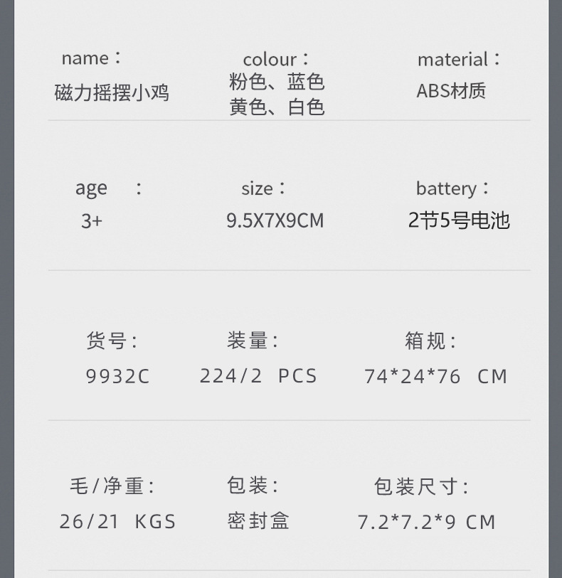| Colores | Pequeña gallina oscilante,Swing lindo pollo divertido [precio de 1] |