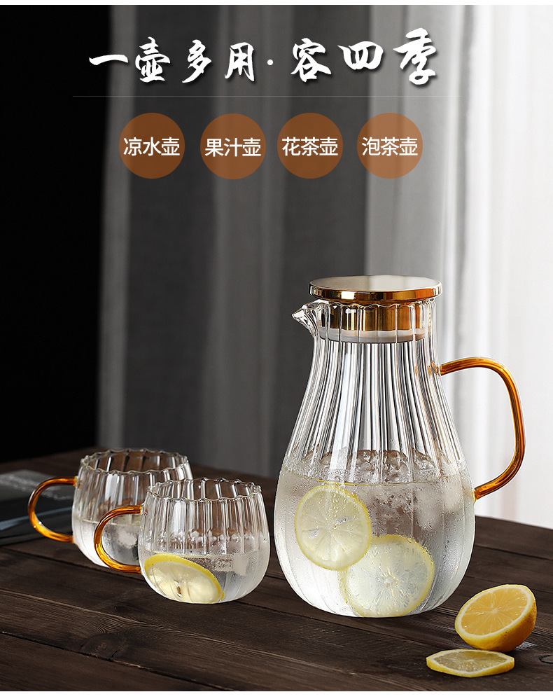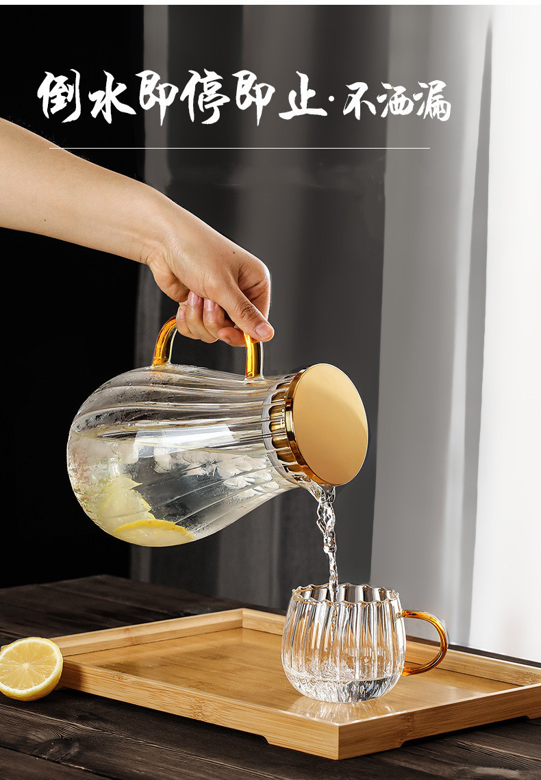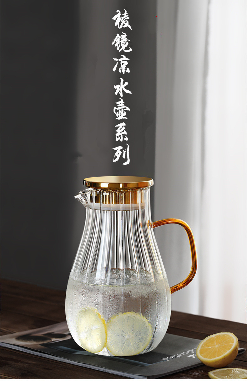 Creativo rayado gota de agua fría botella de agua borosilicato vidrio tetera hogar cubierta de acero inoxidable gran capacidad botella de agua fría