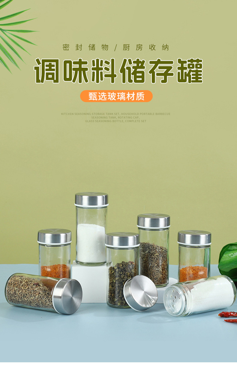Cocina condimento tarro de almacenamiento traje hogar portátil barbacoa esparcidor con tornillo tapa vidrio condimento tarro conjunto completo