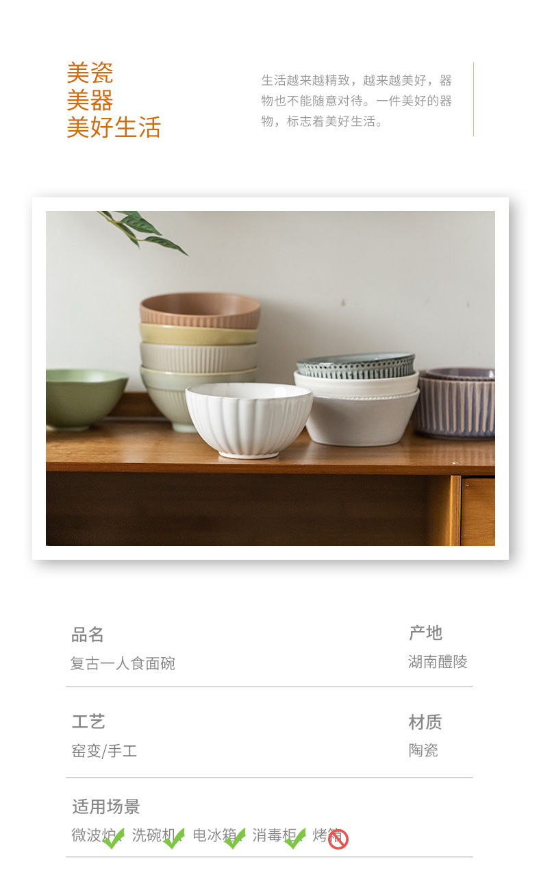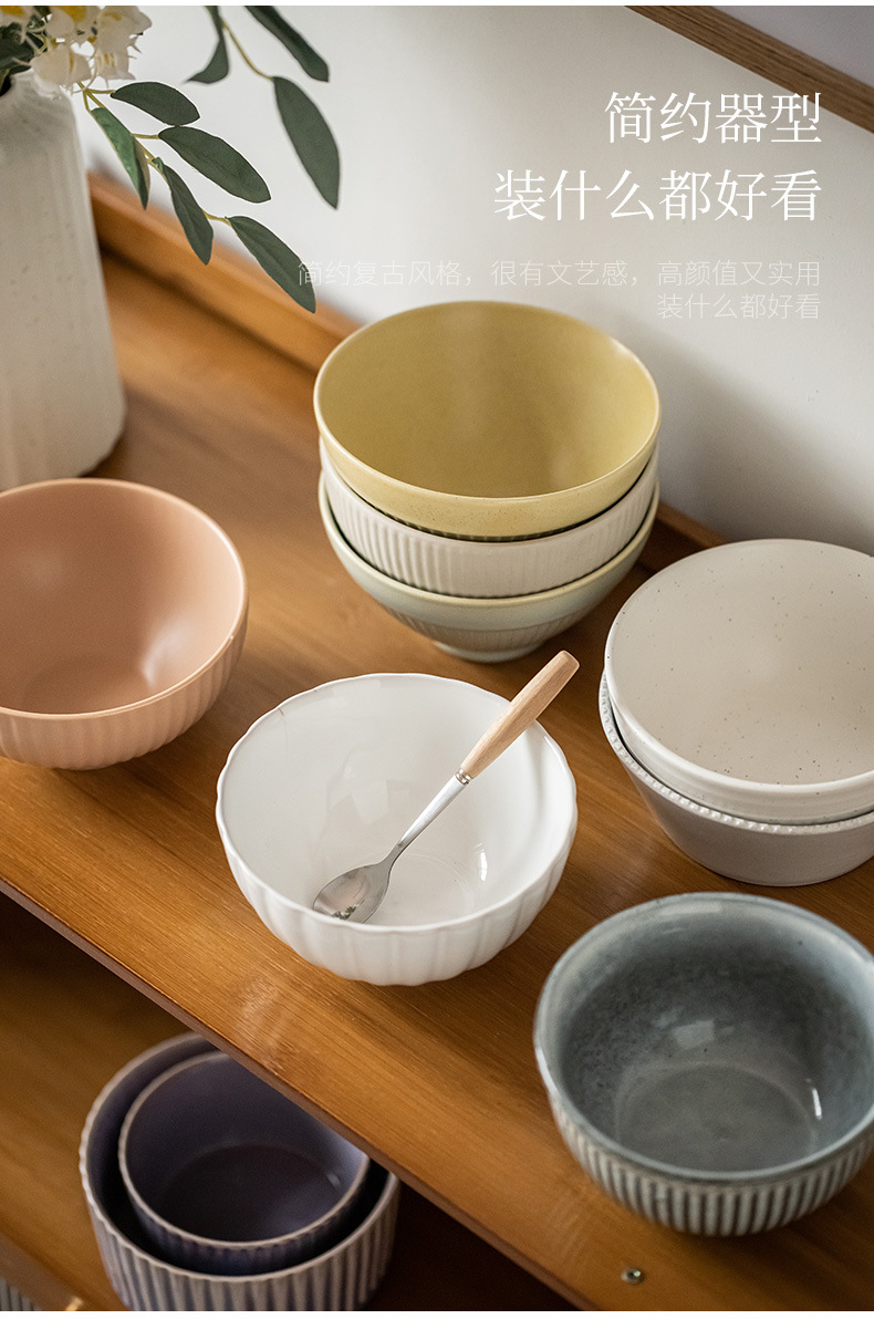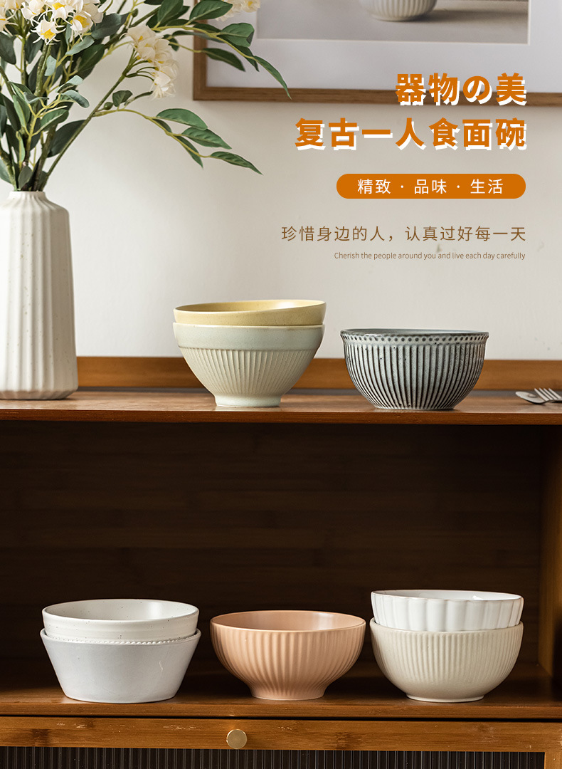 Una colección de tazones de fideos para una persona, tazones de vajilla de cerámica retro, tazones de sopa para el hogar, tazones de ensalada, tazones de verduras, tazones de sopa al por mayor