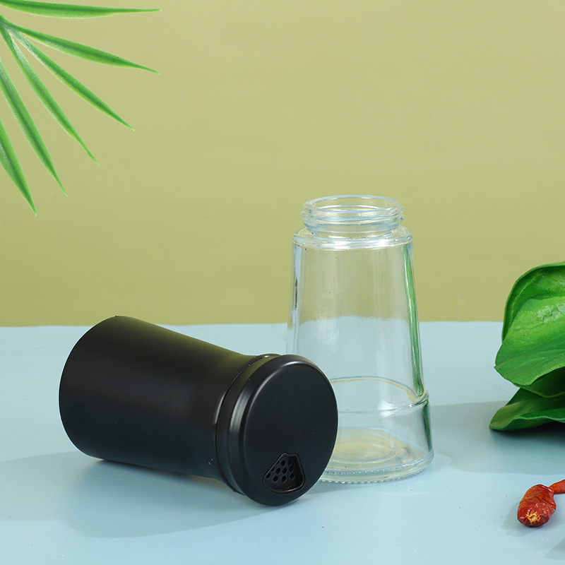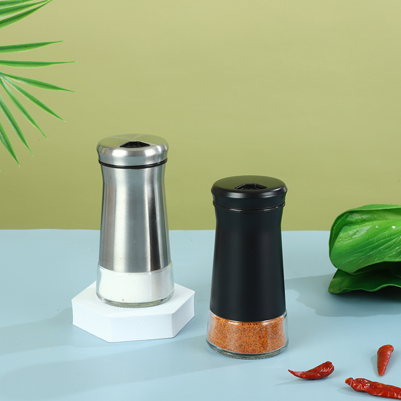 Fábrica al por mayor botella de condimento de vidrio de acero inoxidable cocina esparcidor de pimienta porosa giratoria sal de mar