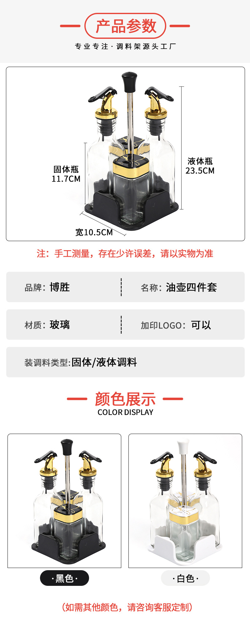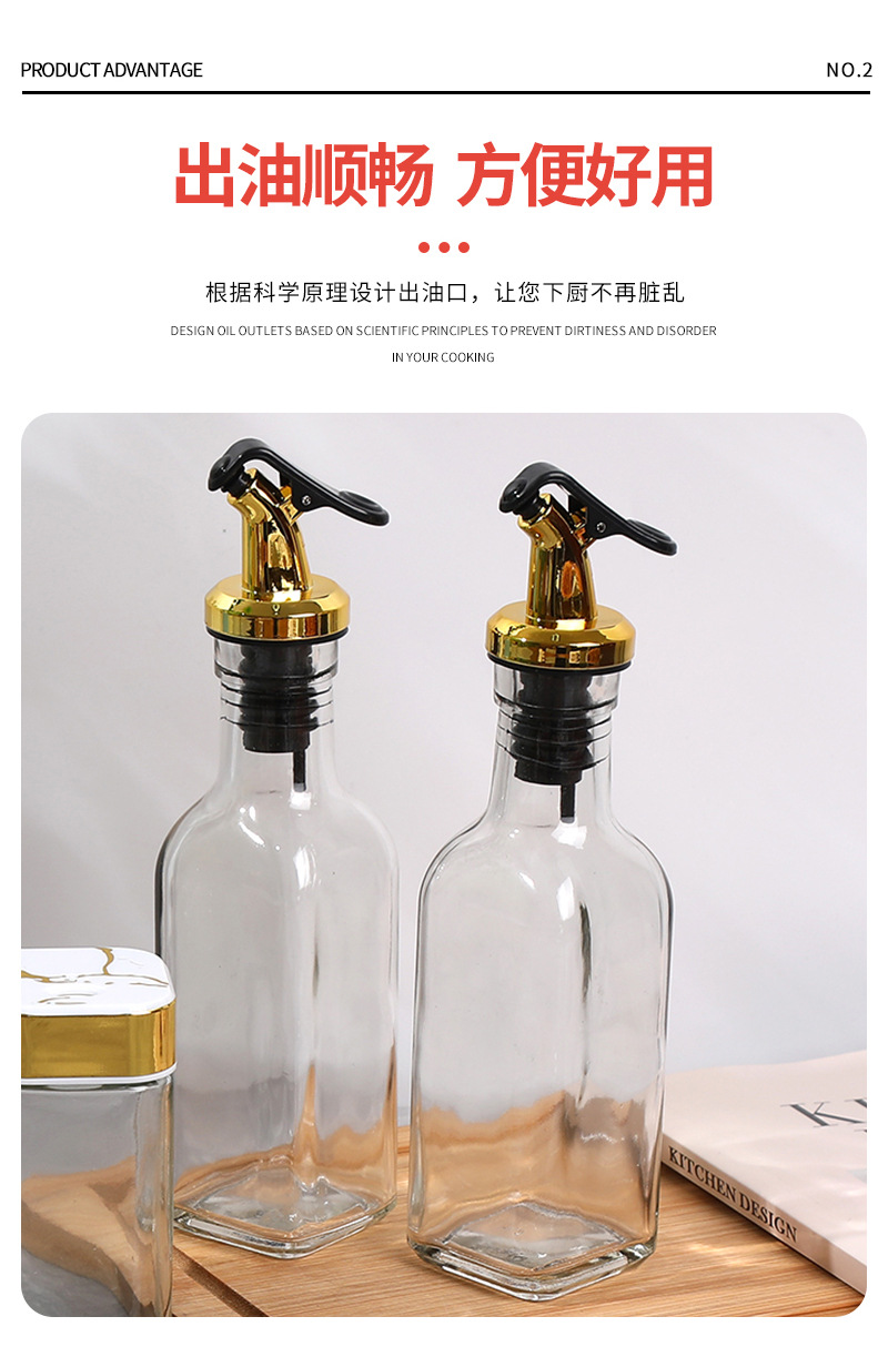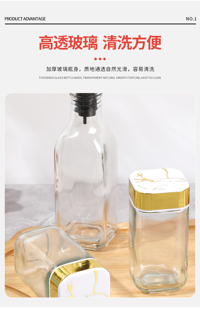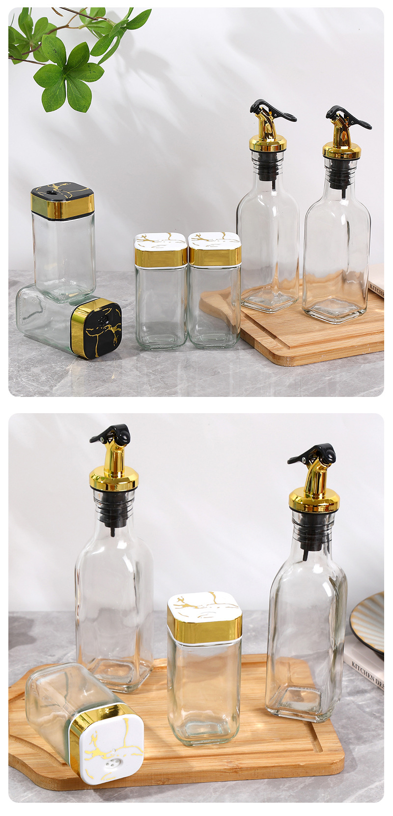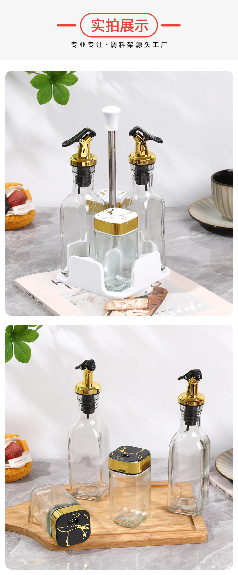 Olla de aceite de cocina juego de cuatro piezas para el hogar combinación de tanque de condimento de lujo ligero sellado a prueba de humedad botella de condimento de vidrio al por mayor