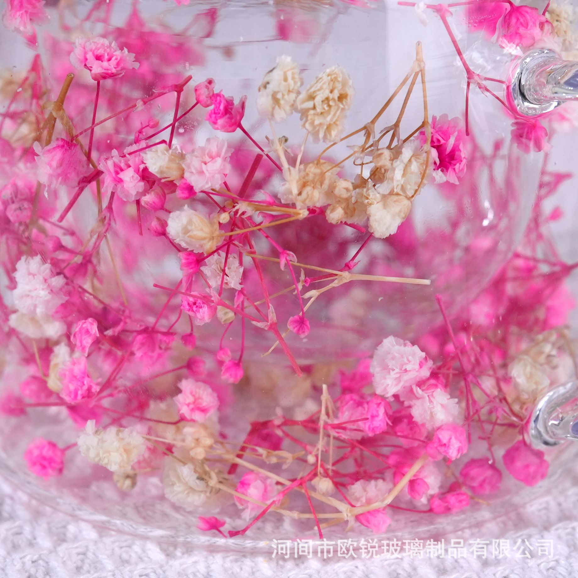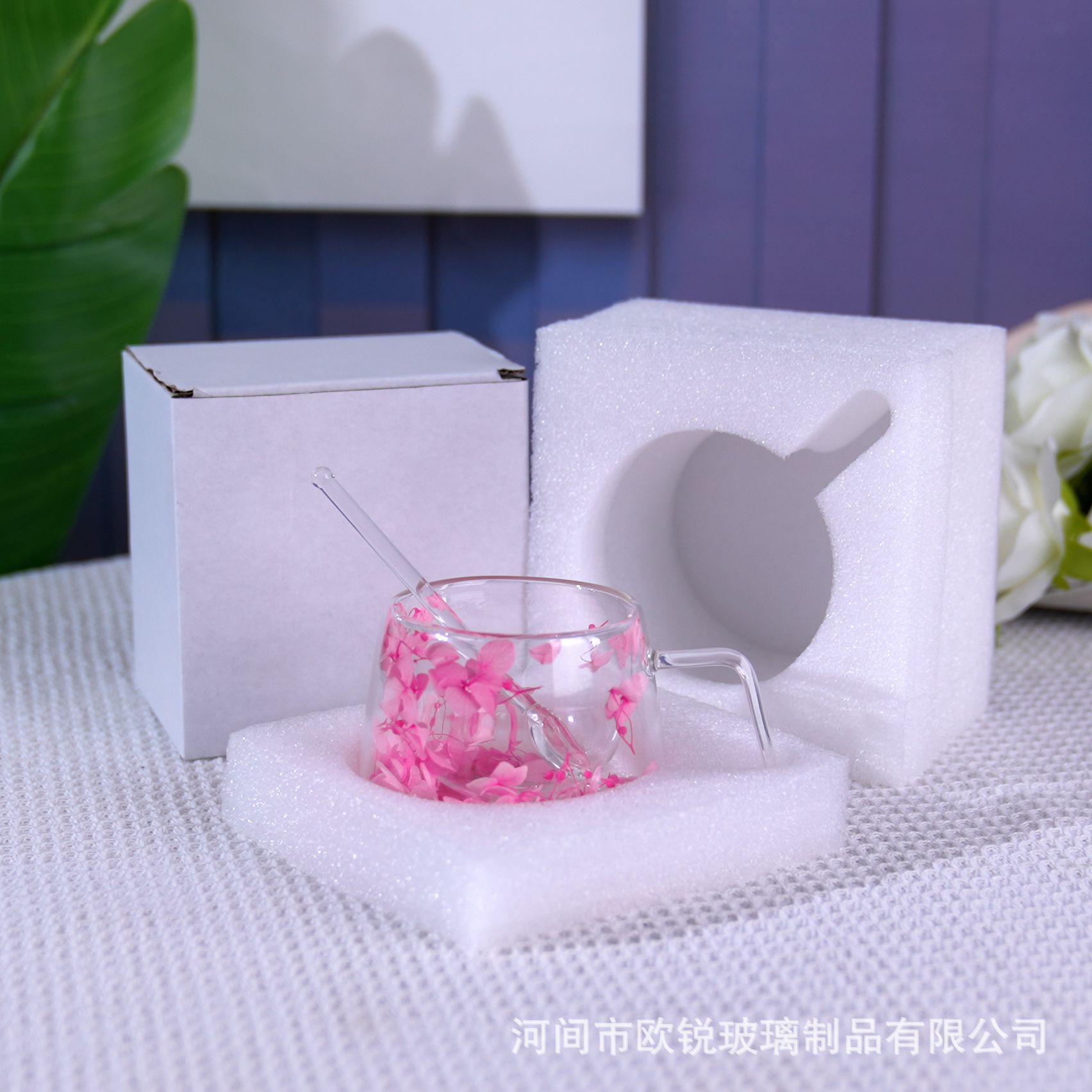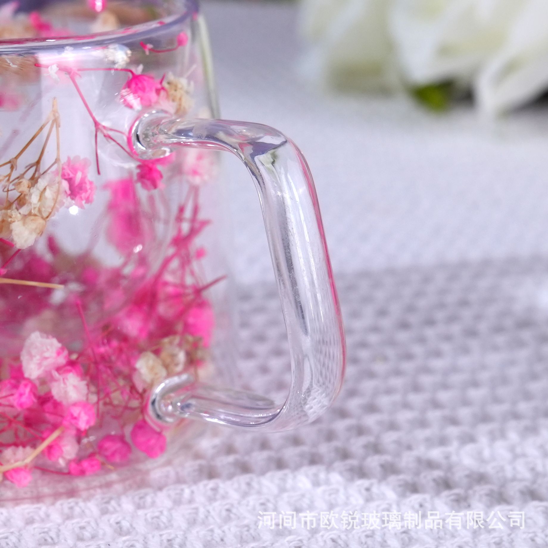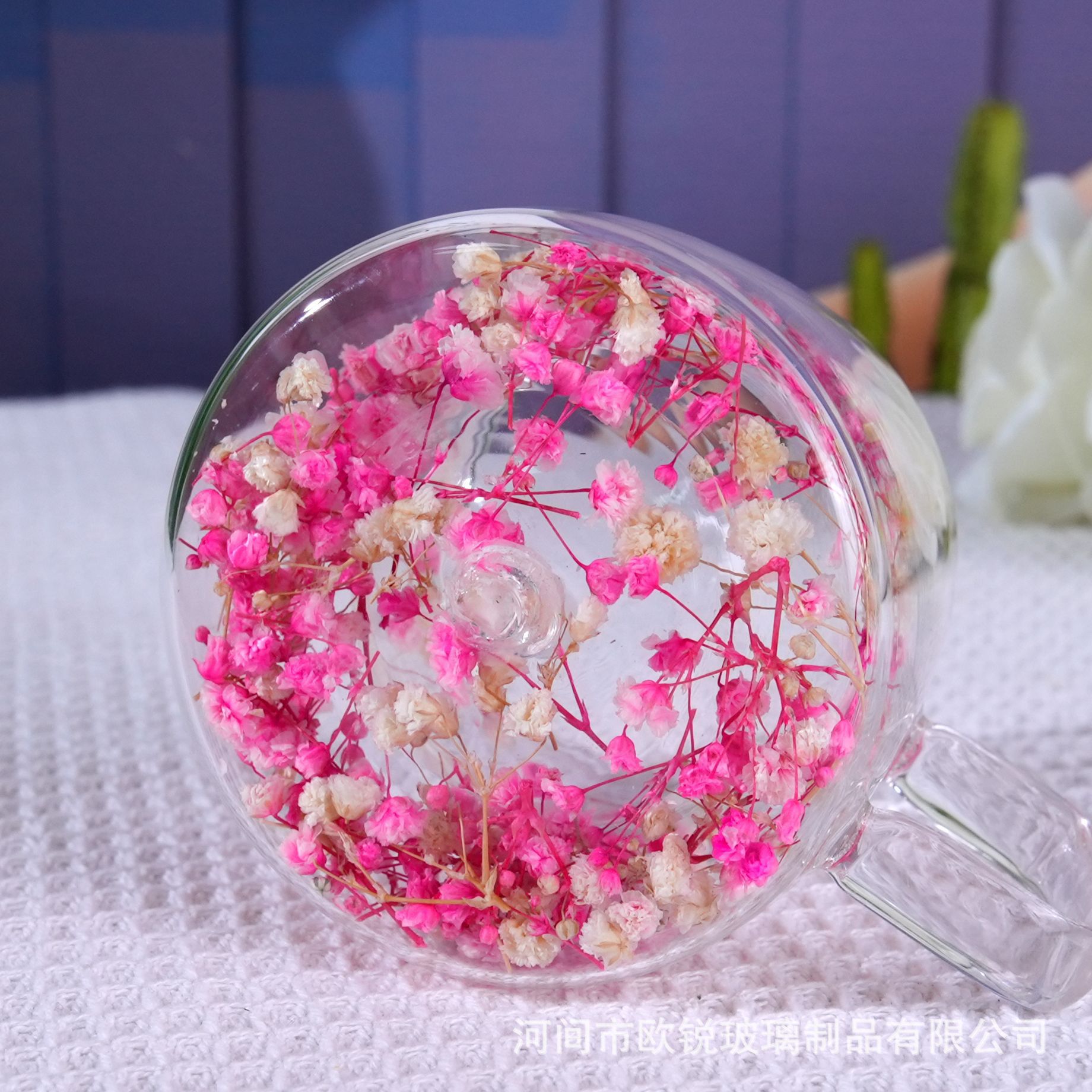 Flores verdaderas tazas de vidrio de doble capa, tazas de té de leche de doble capa de vidrio resistente al calor creativo, tazas de té de doble capa de flores incrustadas