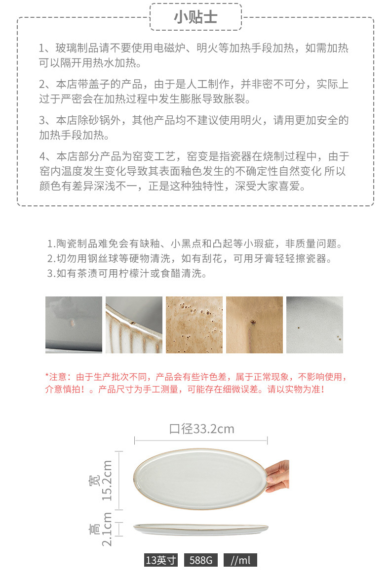 | Color | Jingchu - 13 pulgadas de ceniza de plato de pescado Oval (micro - defecto) |