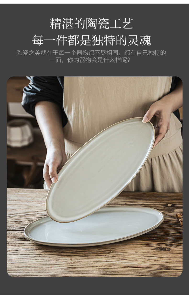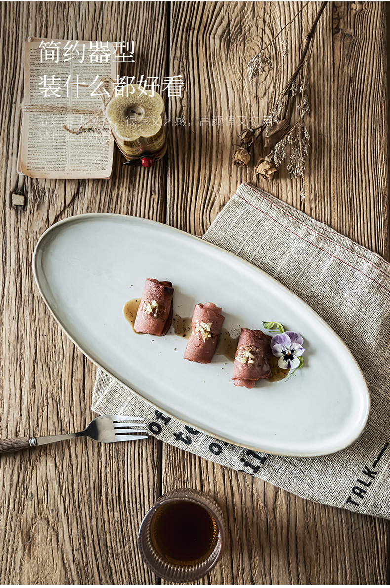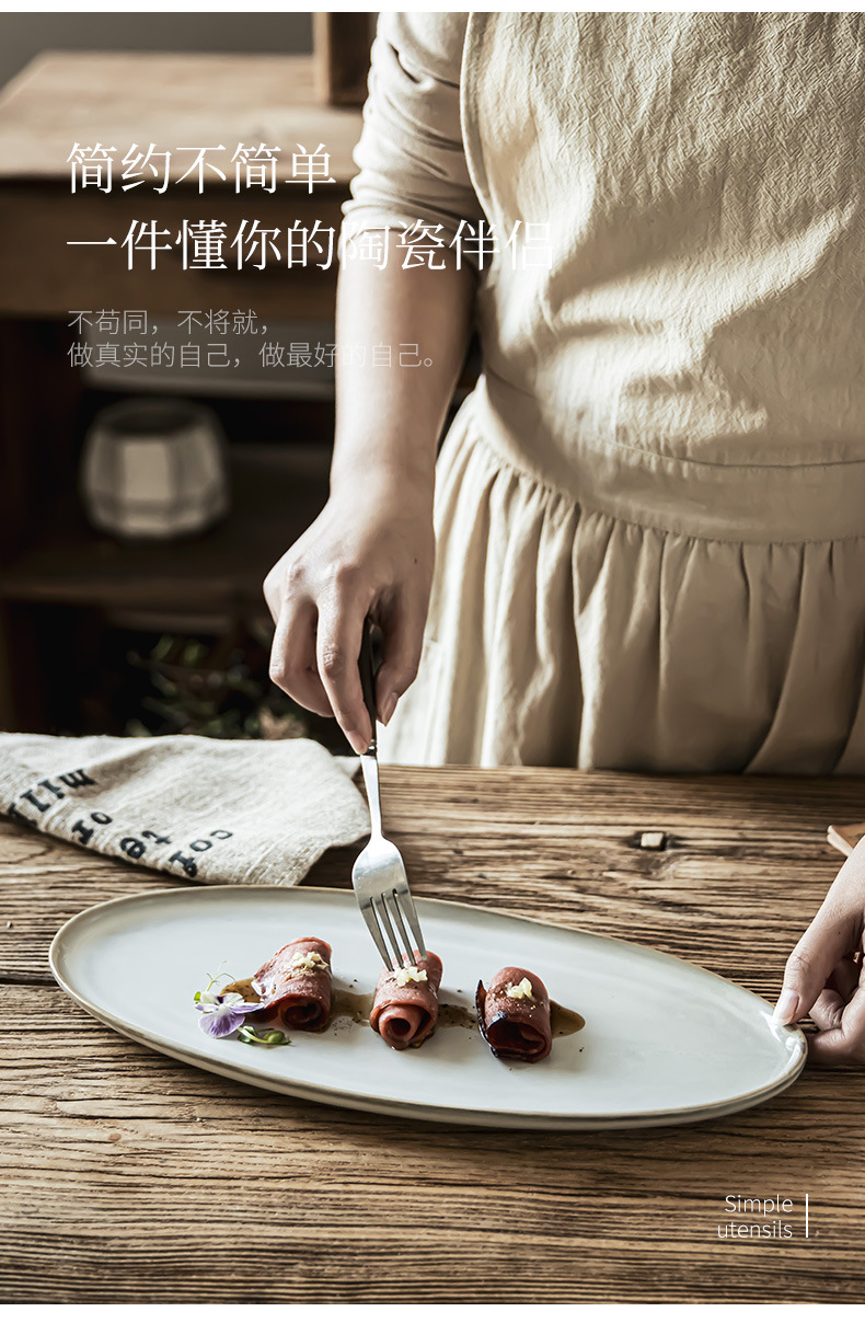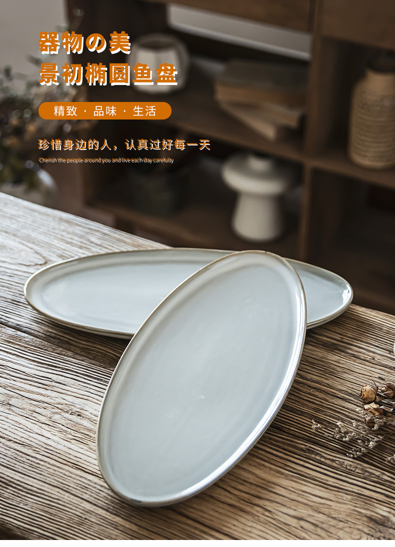 Estilo nórdico simple platos de cerámica oval casero plato de pescado al vapor horno de sushi plato de alta sensación
