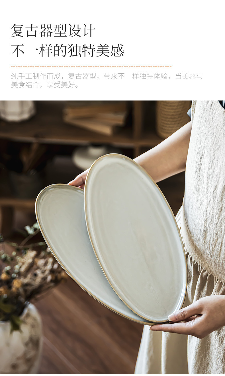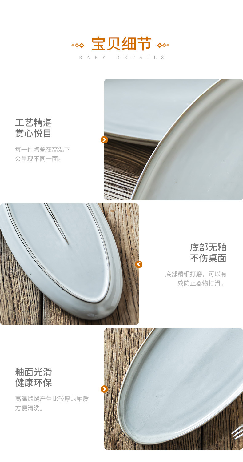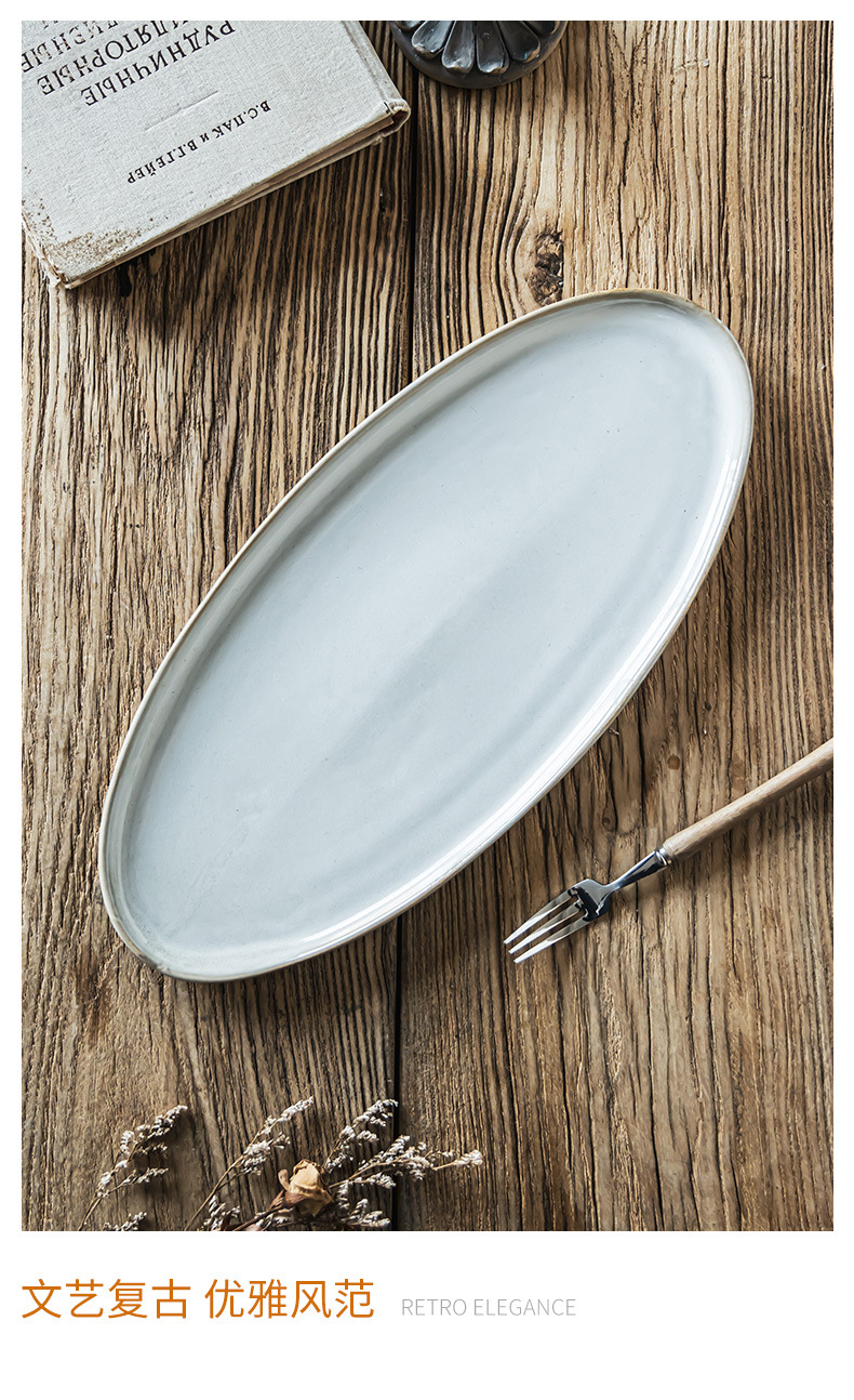 Estilo nórdico simple platos de cerámica oval casero plato de pescado al vapor horno de sushi plato de alta sensación