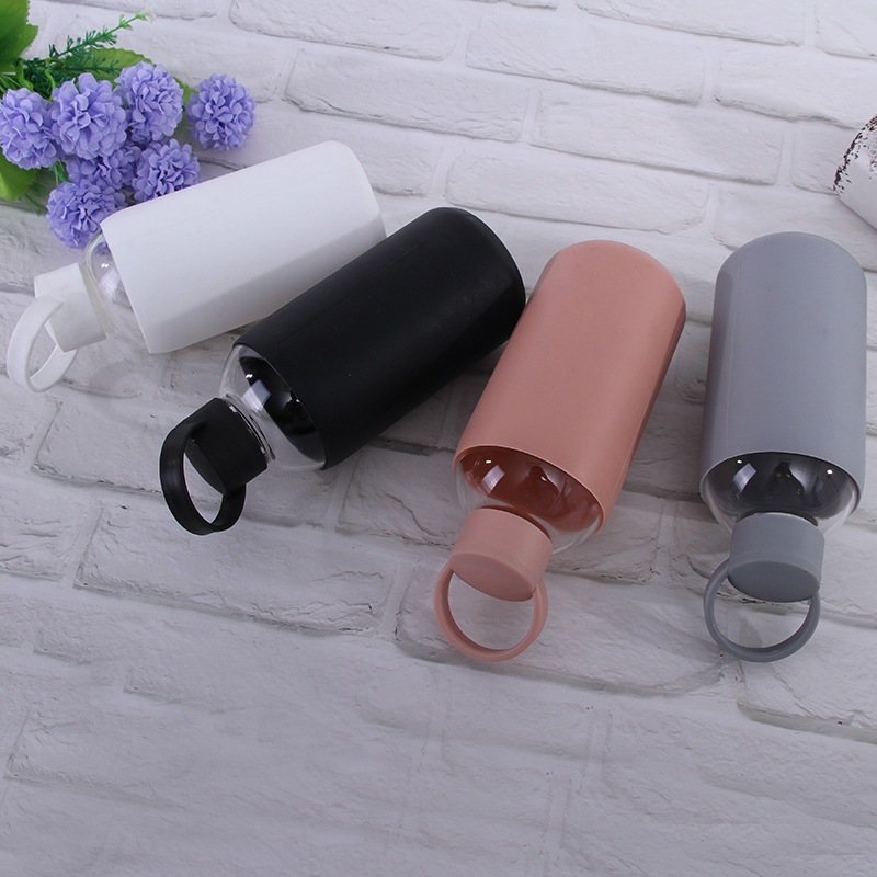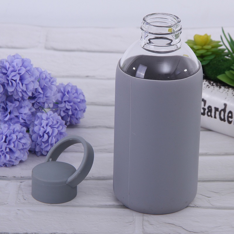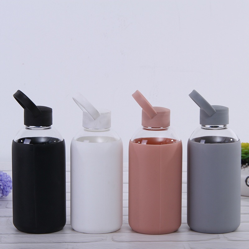 Comercio exterior exportación creativa deportiva hervidor de agua 600ml gran capacidad vidrio de silicona al aire libre vasos de agua al por mayor