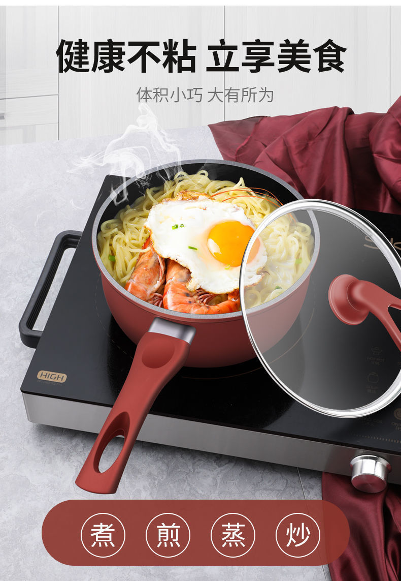 Dormitorio olla de fideos instantáneos para una persona, olla antiadherente de piedra médica, olla de suplemento alimenticio para bebés, olla de leche caliente, olla de fideos multifunción para el hogar