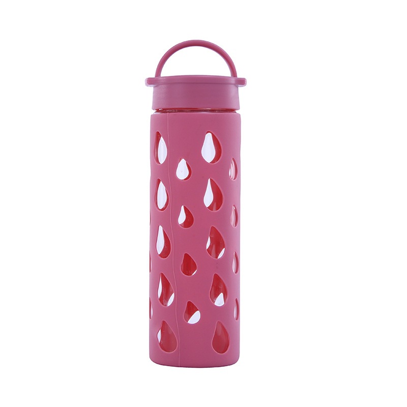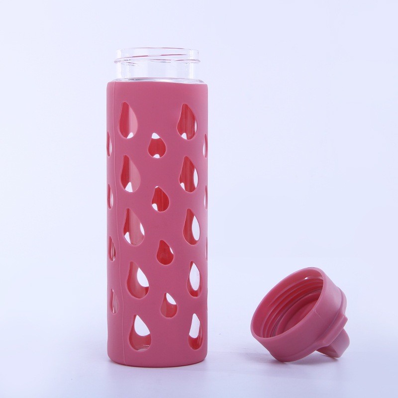 Comercio exterior vasos de vidrio portátiles botellas de vidrio aislantes de color personalizados gotas de agua de alto silicio copas de silicona cubierta al por mayor