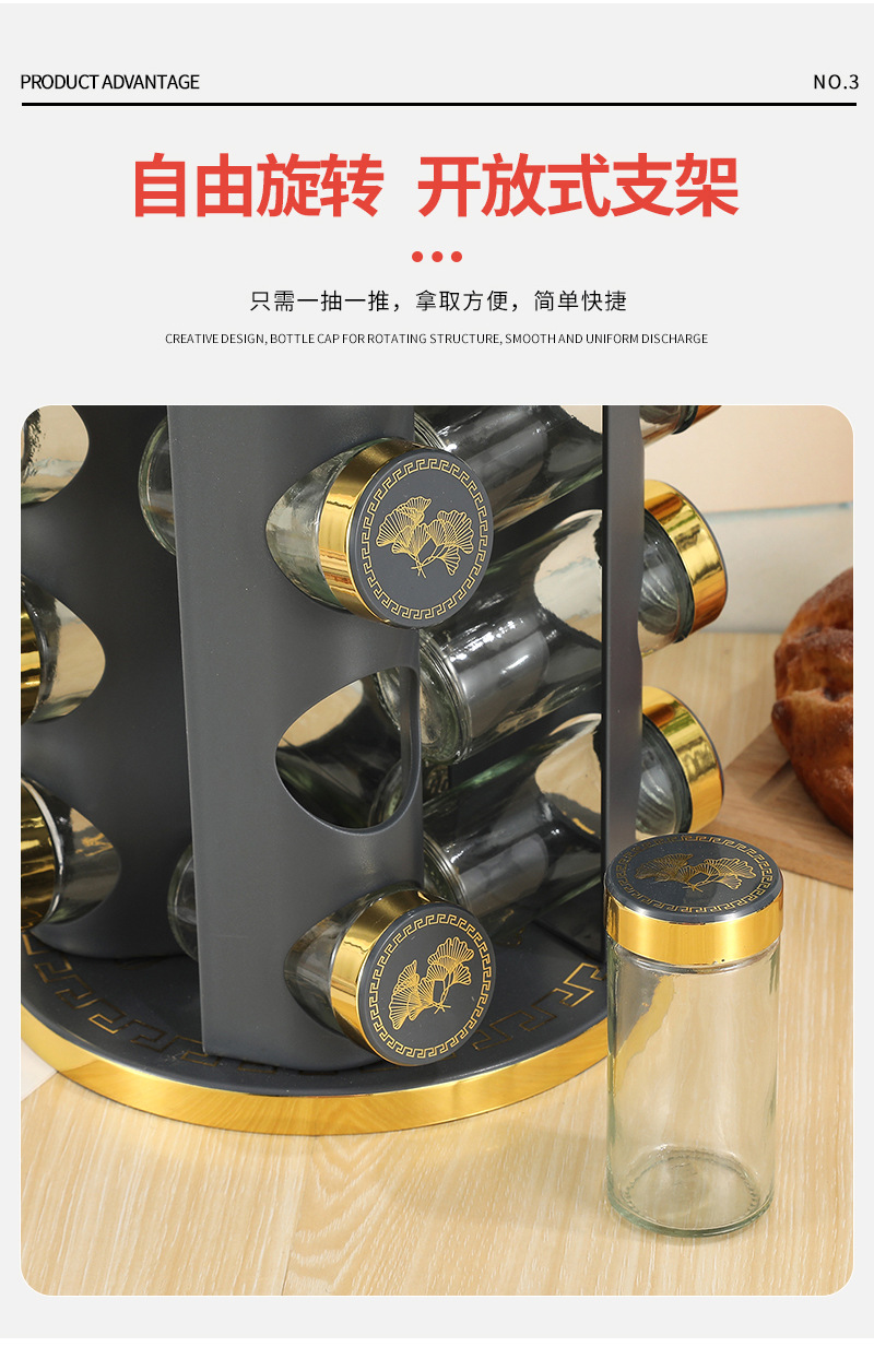Rack de condimento rotatorio redondo condimento multifuncional condimento de hoja de ginkgo de hoja de oro estante de condimento combinado multicapa estante de cocina
