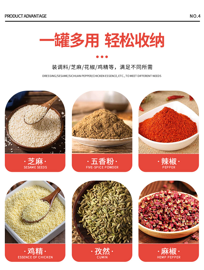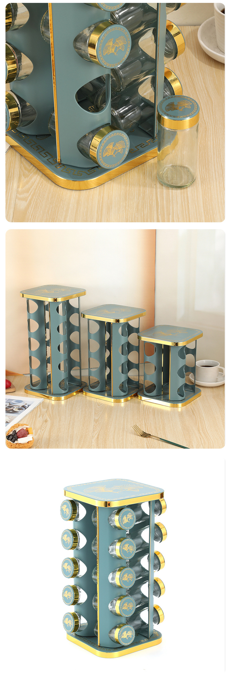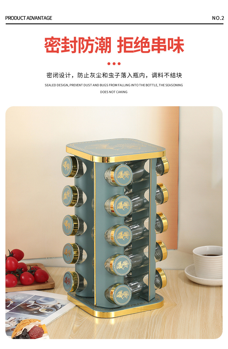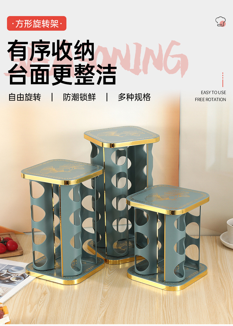 Botella de condimento multicapa cuadrada giratoria Juego de frascos de condimento Tarro de condimento al por mayor Condimento de cocina Estante de botella de condimento