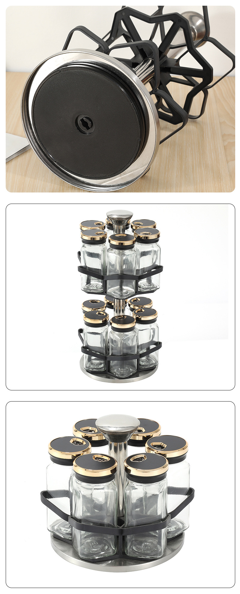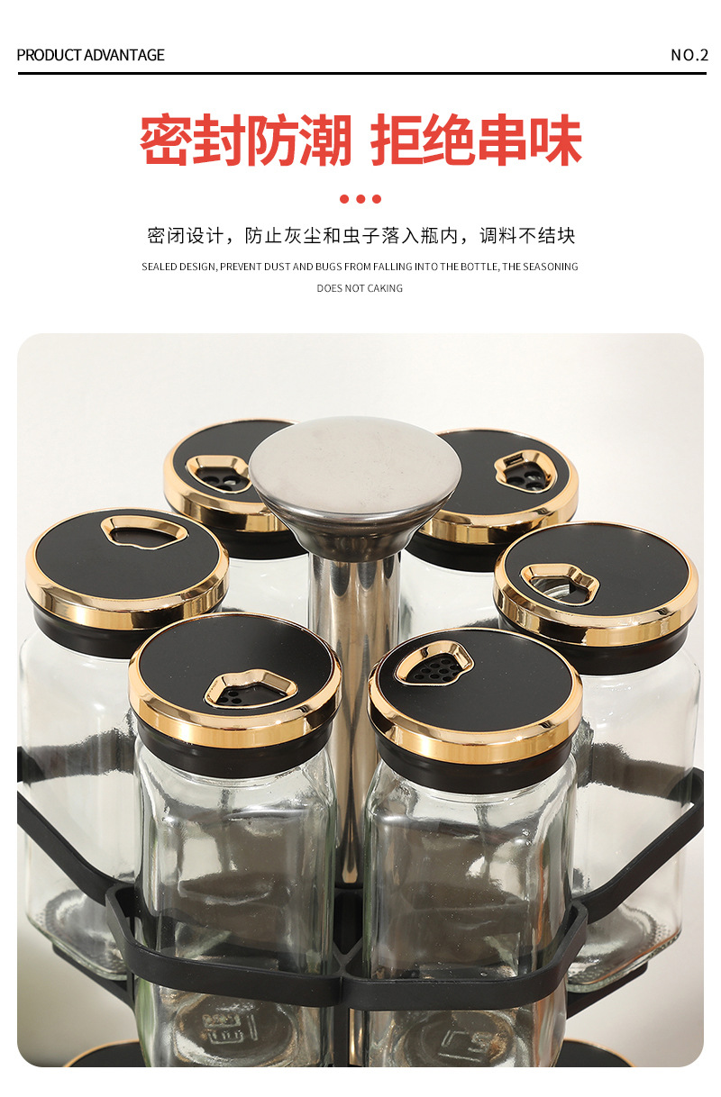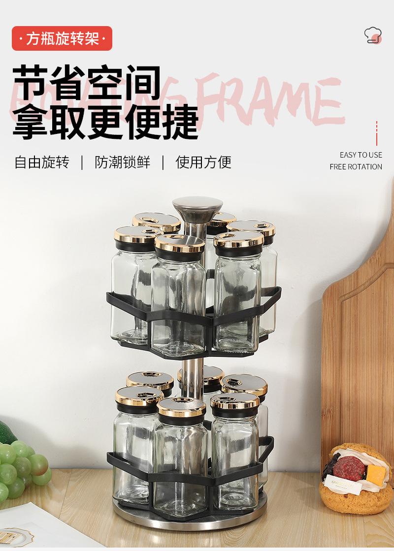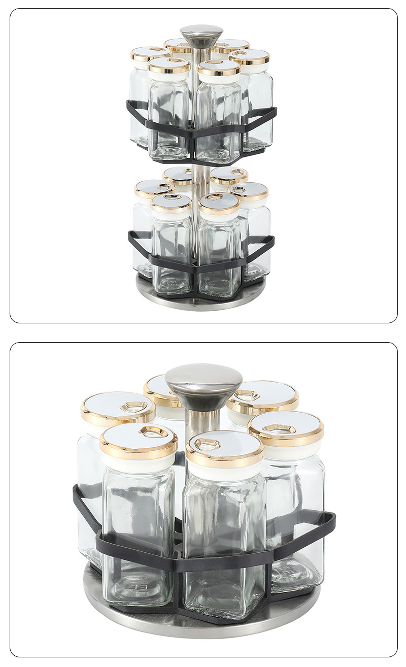 Botella de condimento giratoria de cocina Tarro de condimento doméstico Caja de condimento Juego de combinación de vidrio Tarro de condimento Estante de almacenamiento de condimento