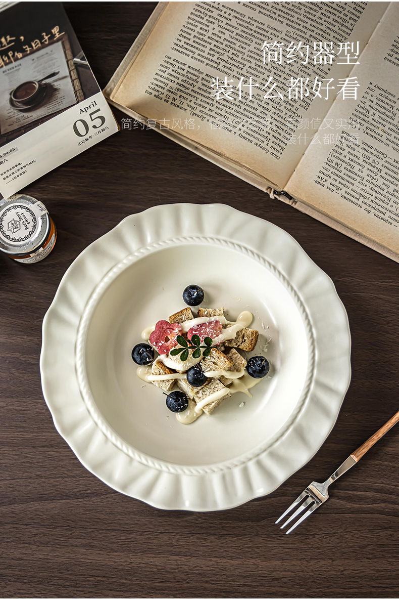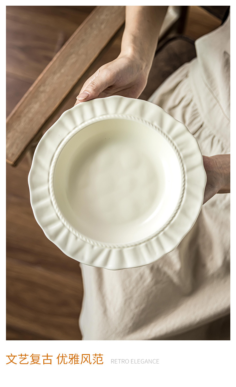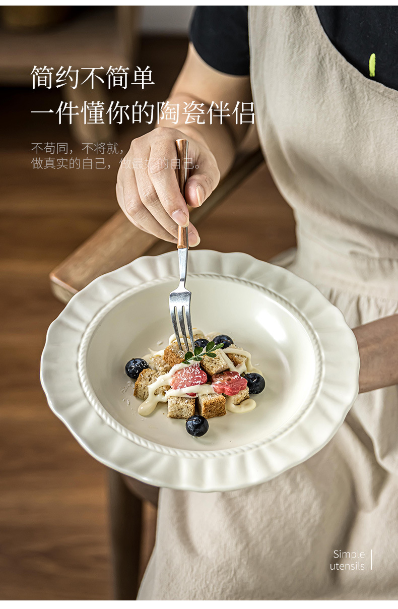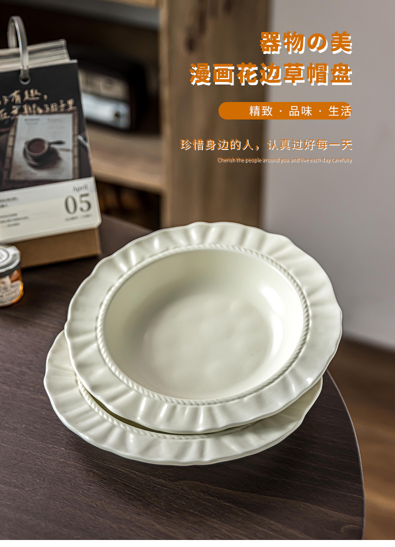Plato de sombrero de paja de cerámica de viento de crema cubiertos dulces domésticos de alto valor de cara platos de encaje platos de frutas