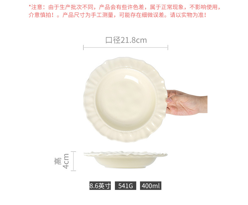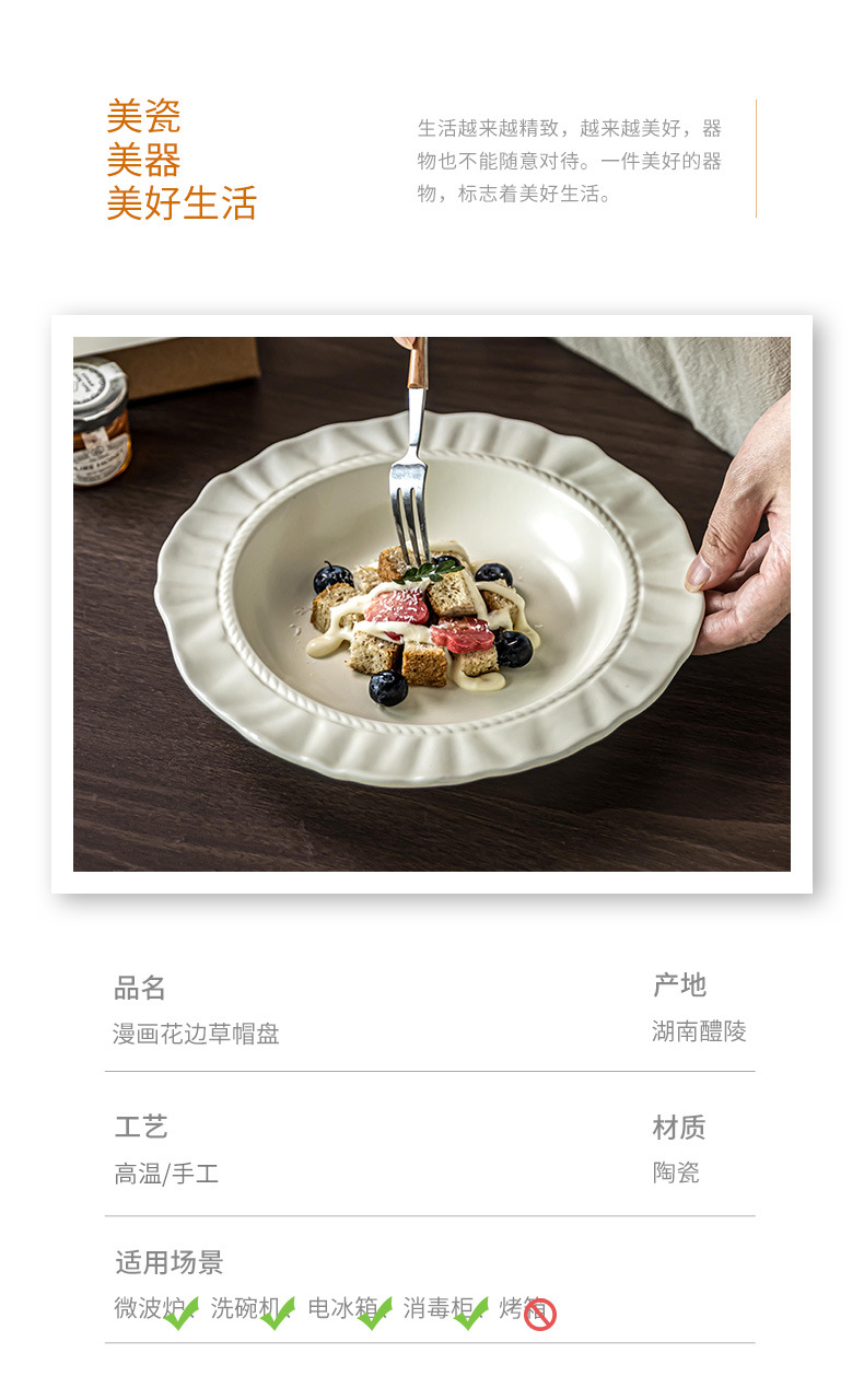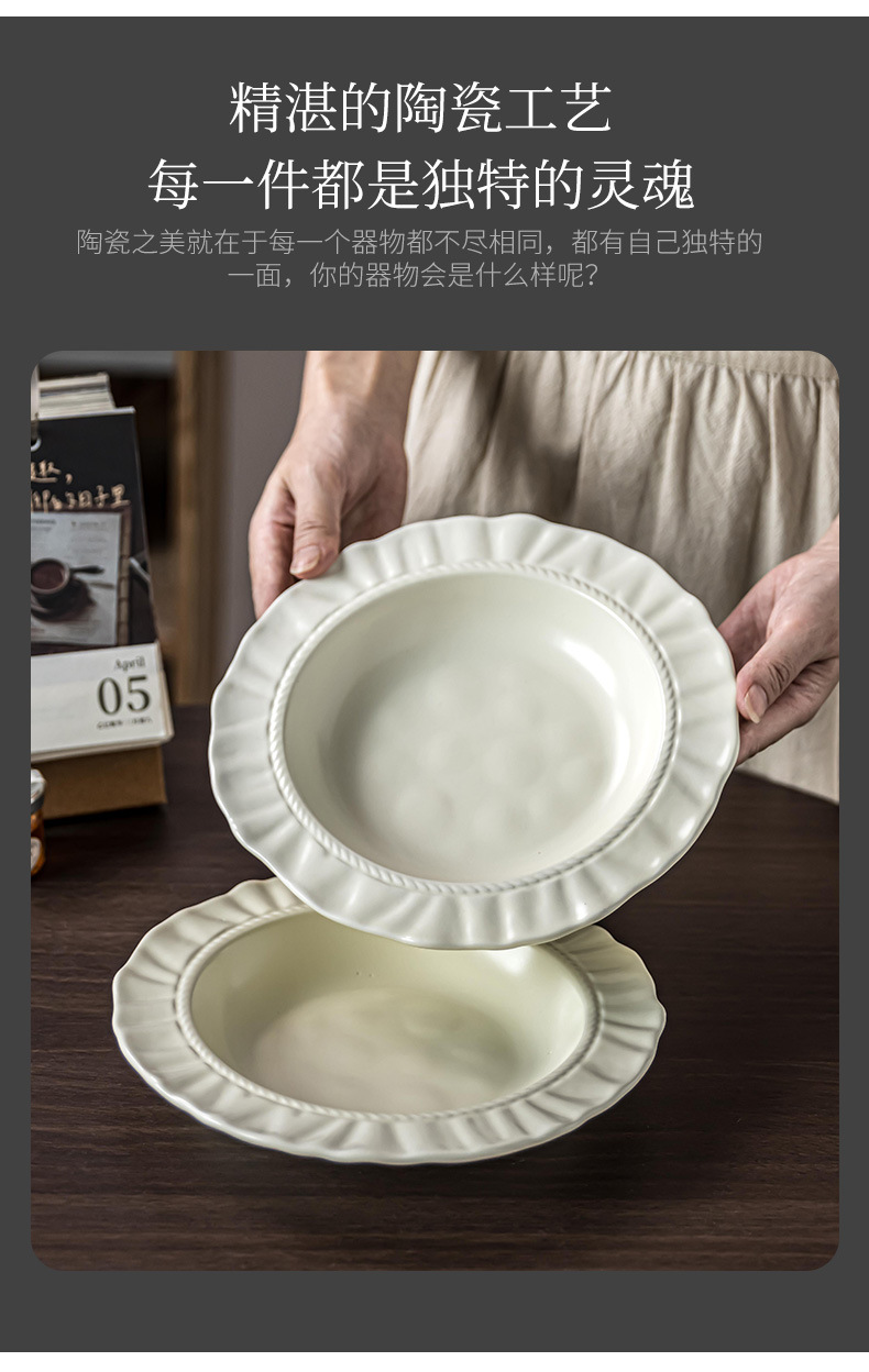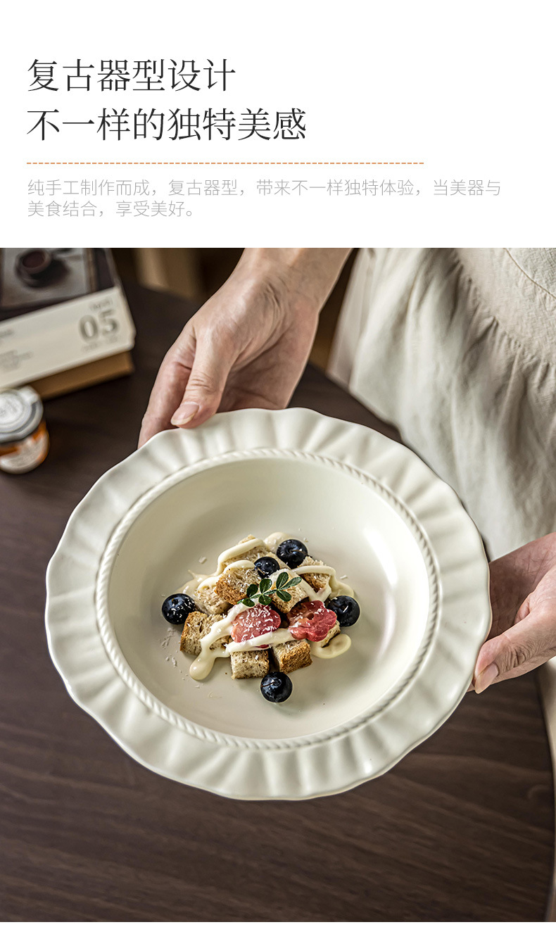 Plato de sombrero de paja de cerámica de viento de crema cubiertos dulces domésticos de alto valor de cara platos de encaje platos de frutas