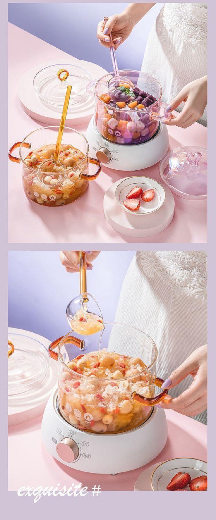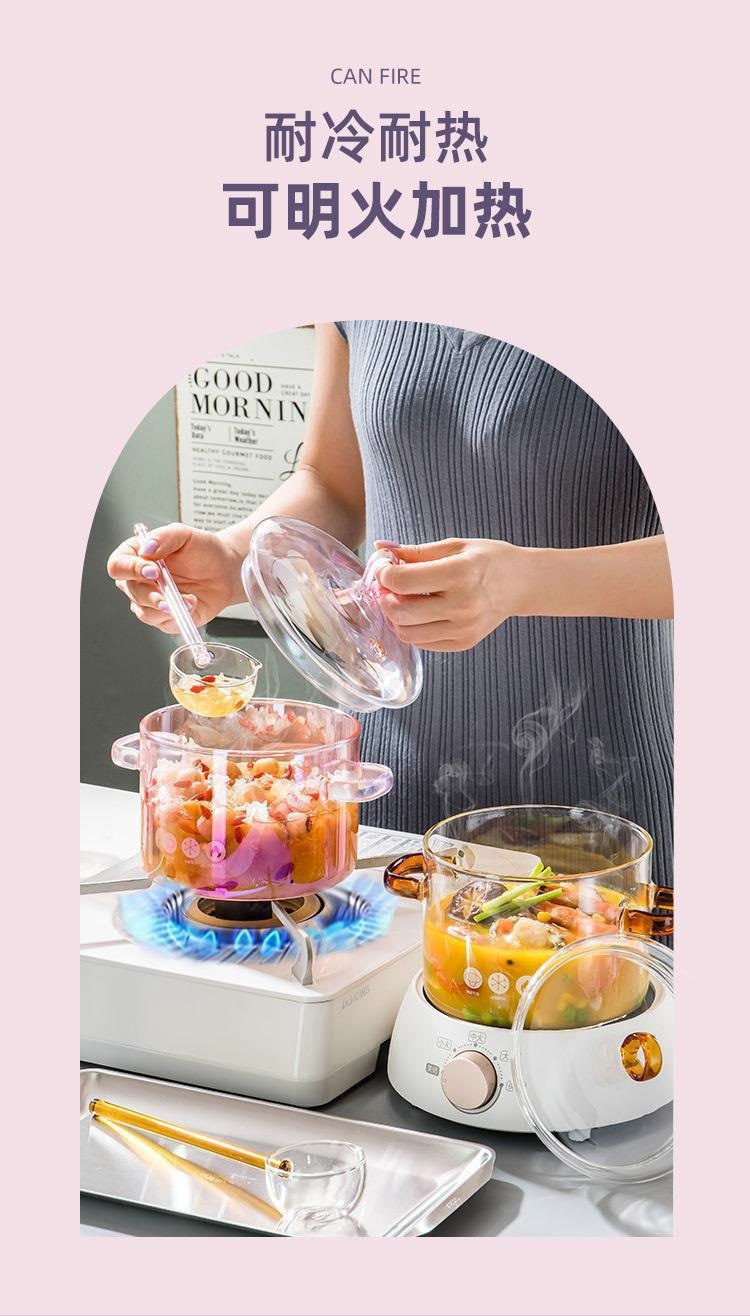 Entrega de la fábrica olla de vidrio de borosilicato alta calefacción doméstica olla de vidrio fideos de cocina olla de doble oreja olla de sopa azul degradado con tapa