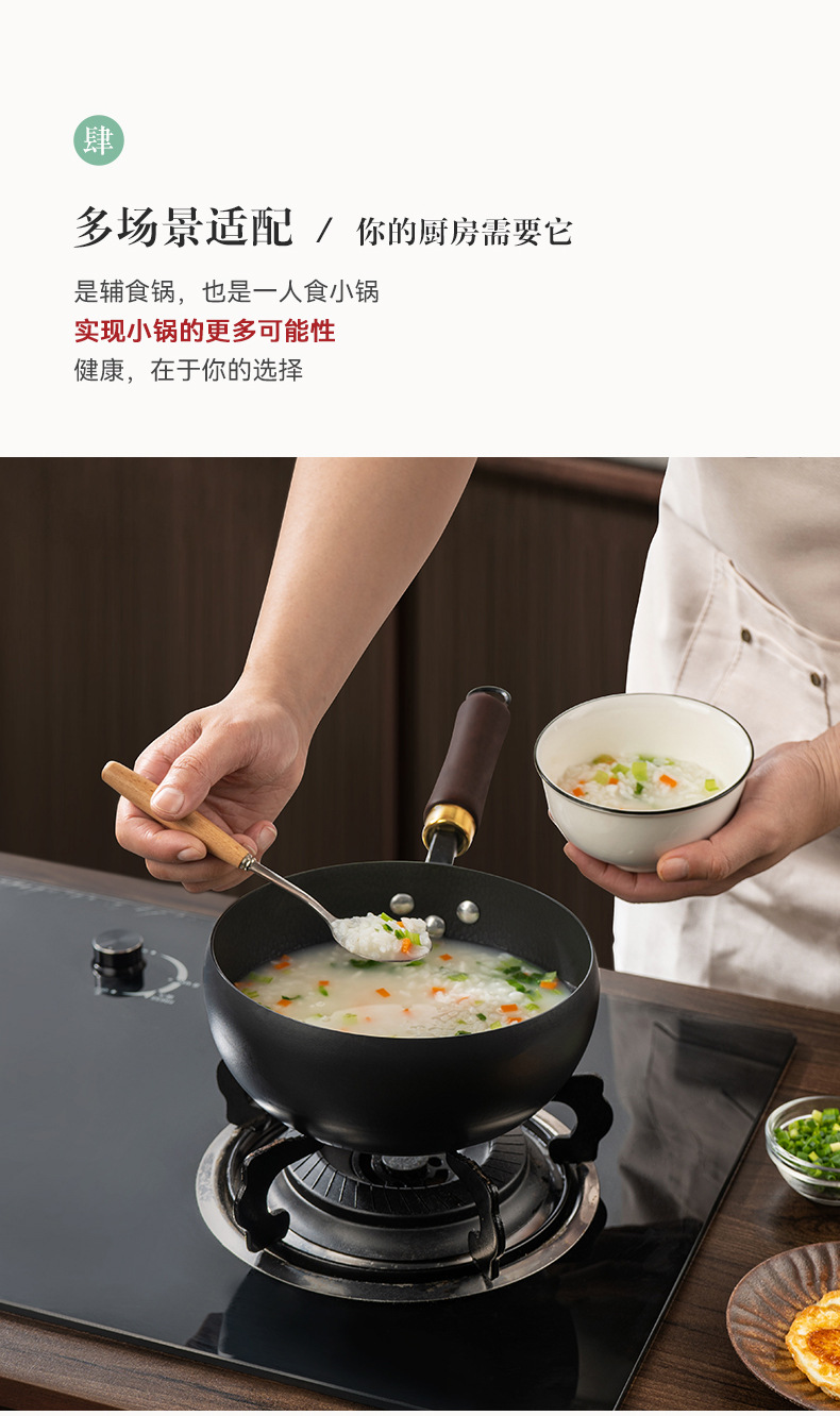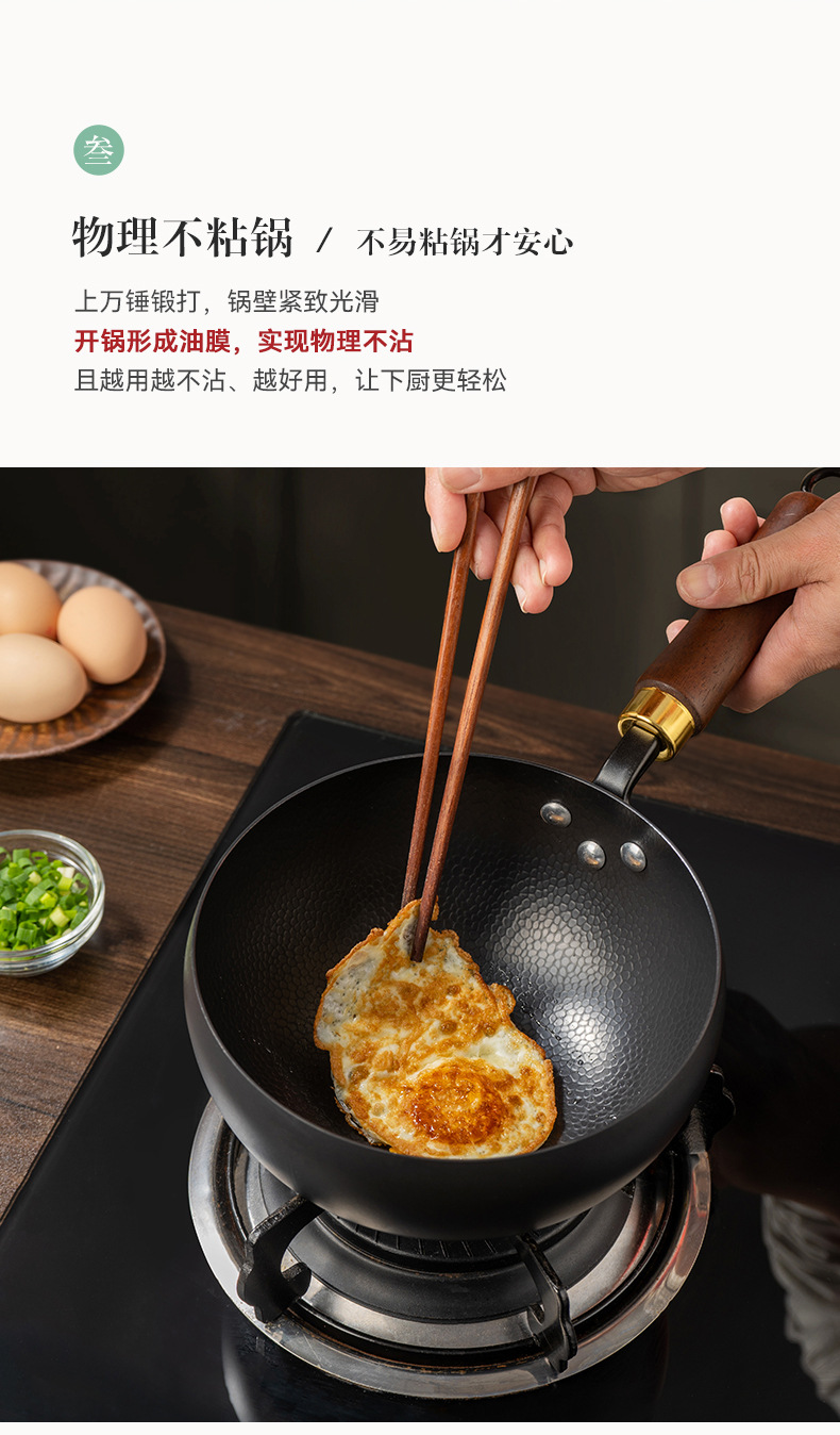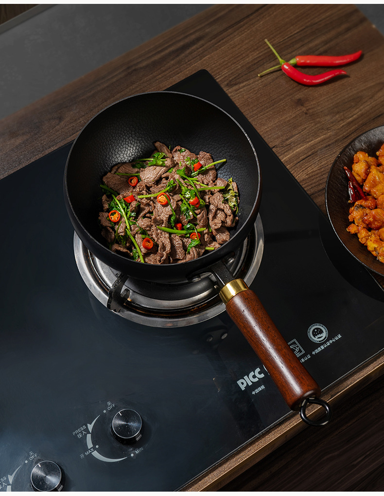 Olla de barriga grande con patrón de martillo de venta caliente de cierto sonido, olla de hierro pequeña para una persona, olla de cocina doméstica sin recubrimiento, estufa universal, wok pequeño