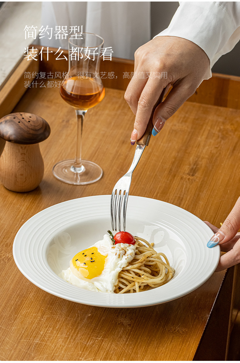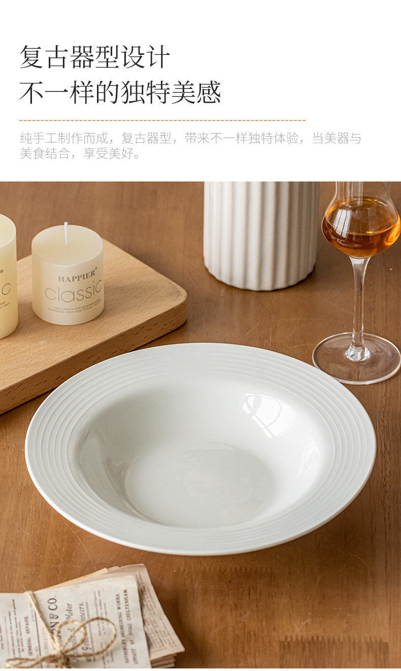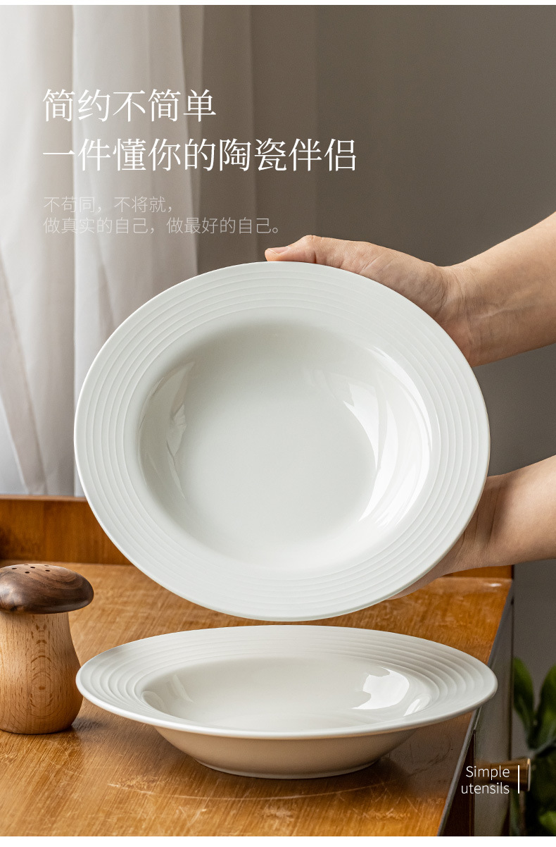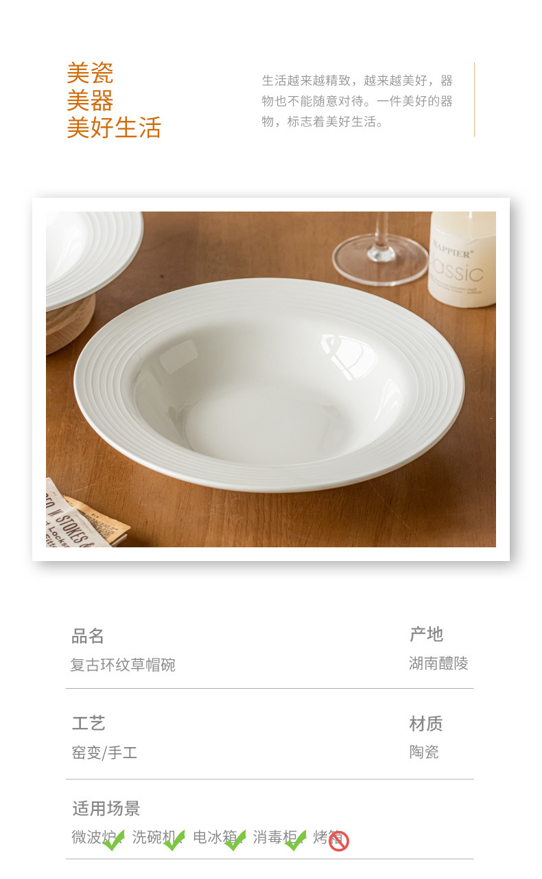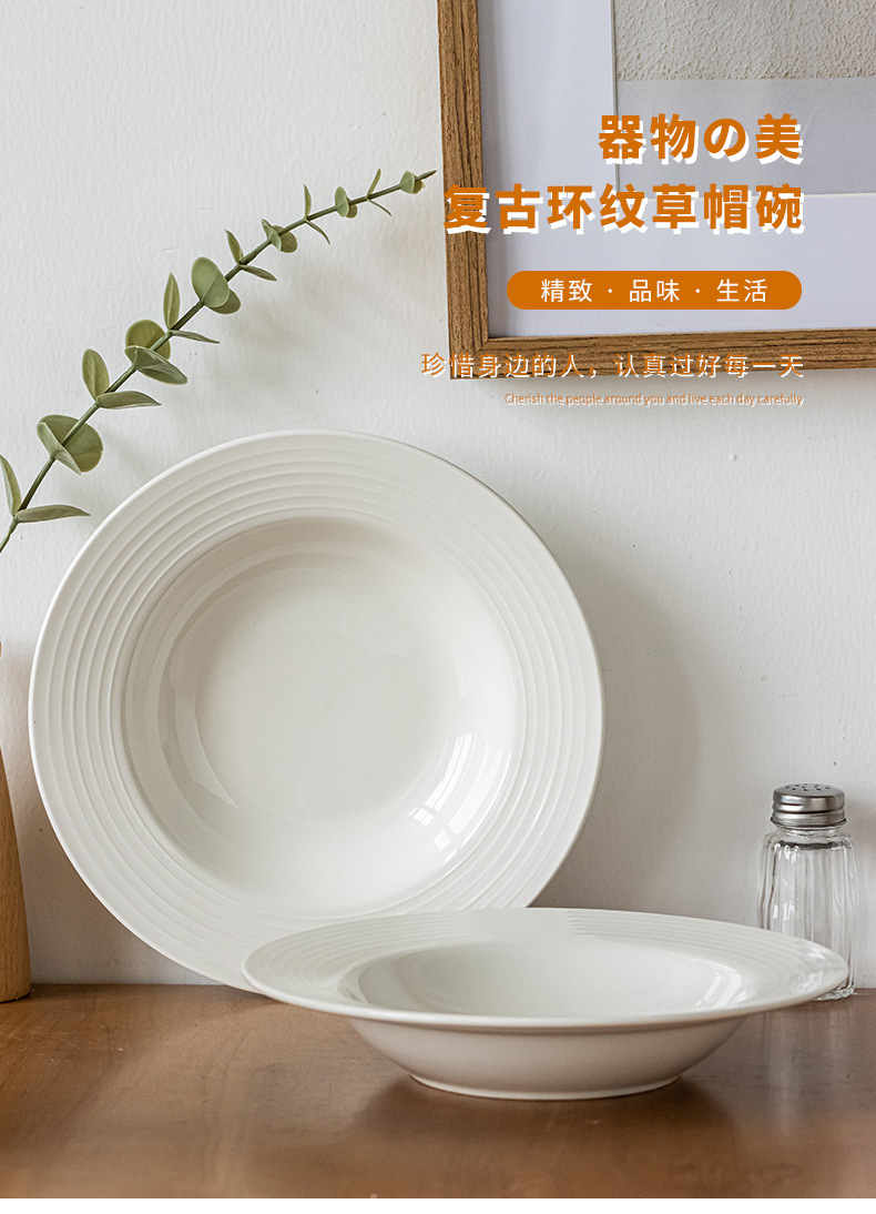 Sombrero de paja de cerámica de rosca simple, plato grande, plato de pasta, plato de verduras para el hogar, plato de ensalada, plato práctico, vajilla al por mayor