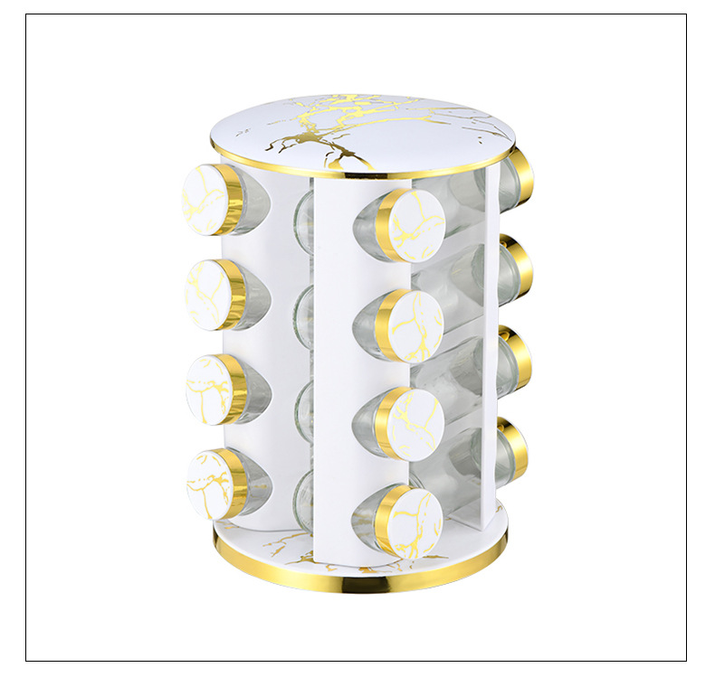 Caja de condimentos multifuncional de cocina Estante de múltiples capas redondo con patrón de mármol completo Estante de condimentos giratorio de acero inoxidable