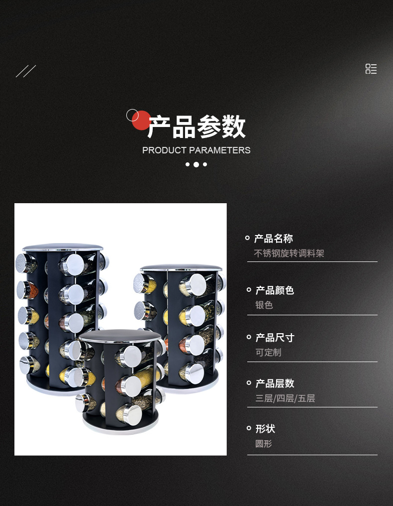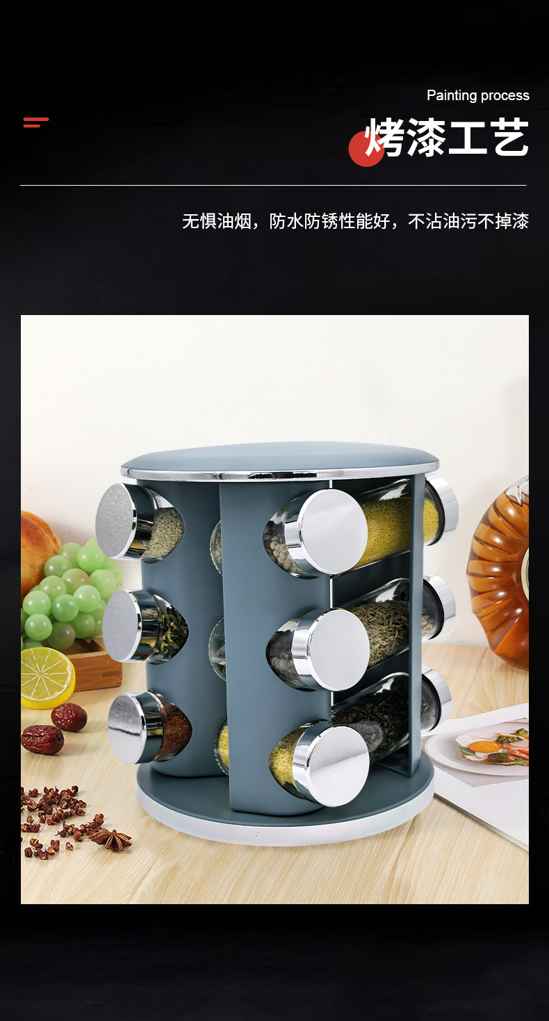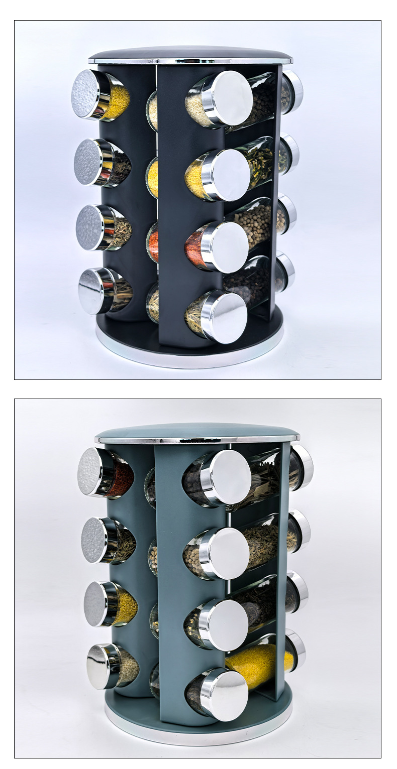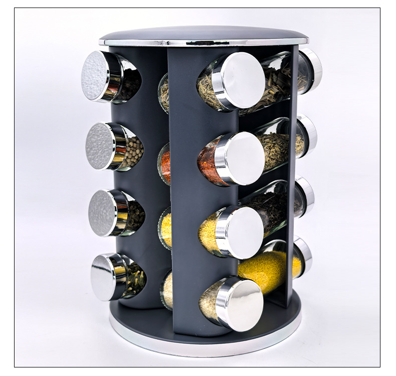 Nuevo transfronterizo especial 360 condimento giratorio condimento ligero de lujo plateado condimento de cocina redondo condimento tanque de condimento conjunto de rack
