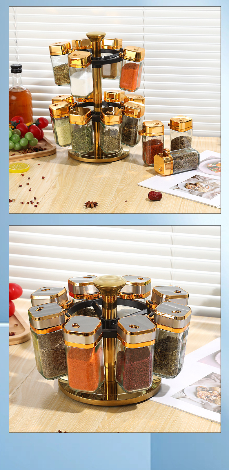 Rack de condimento giratorio de acero inoxidable multicapa mesa de almacenamiento de condimento de cocina multifuncional rack de esquina de condimento mesa giratoria