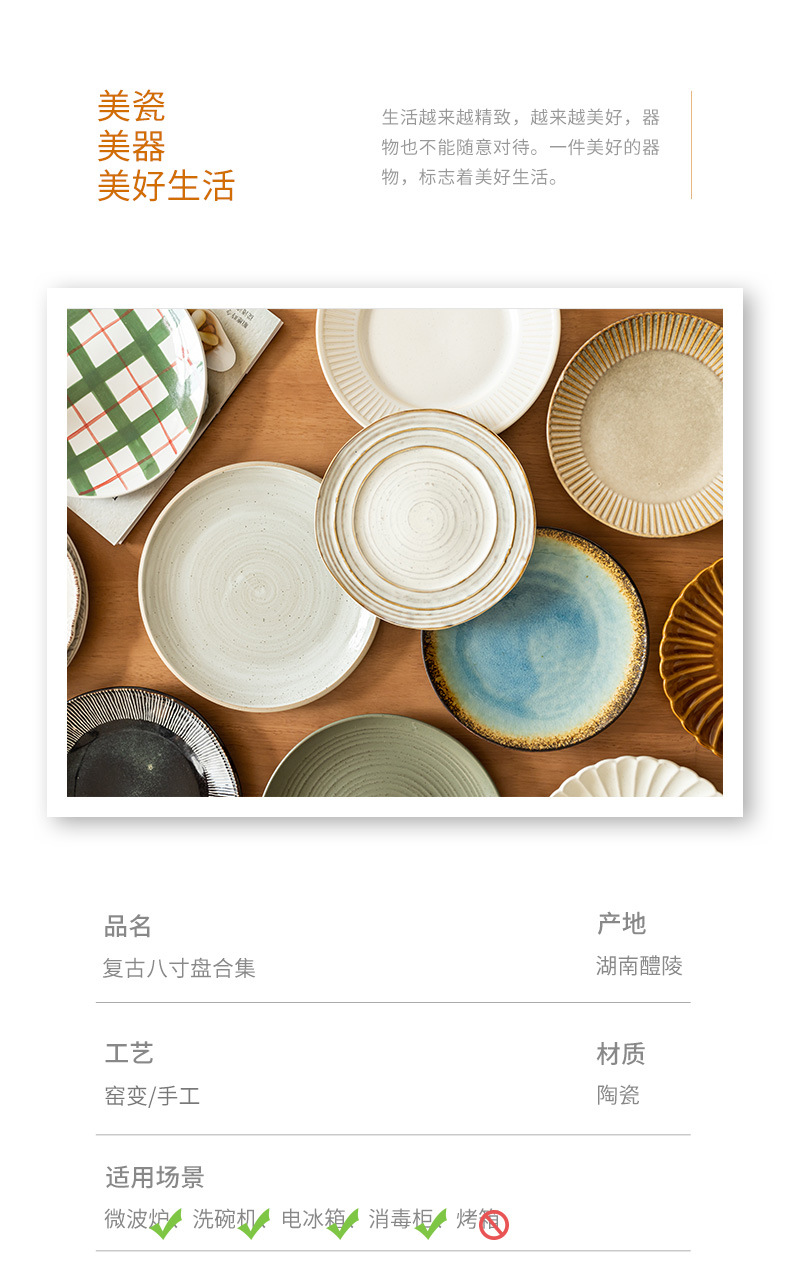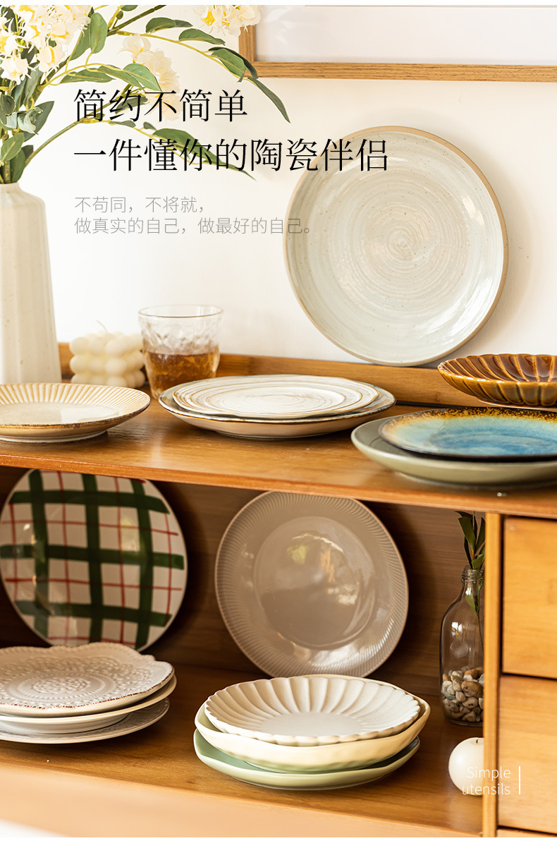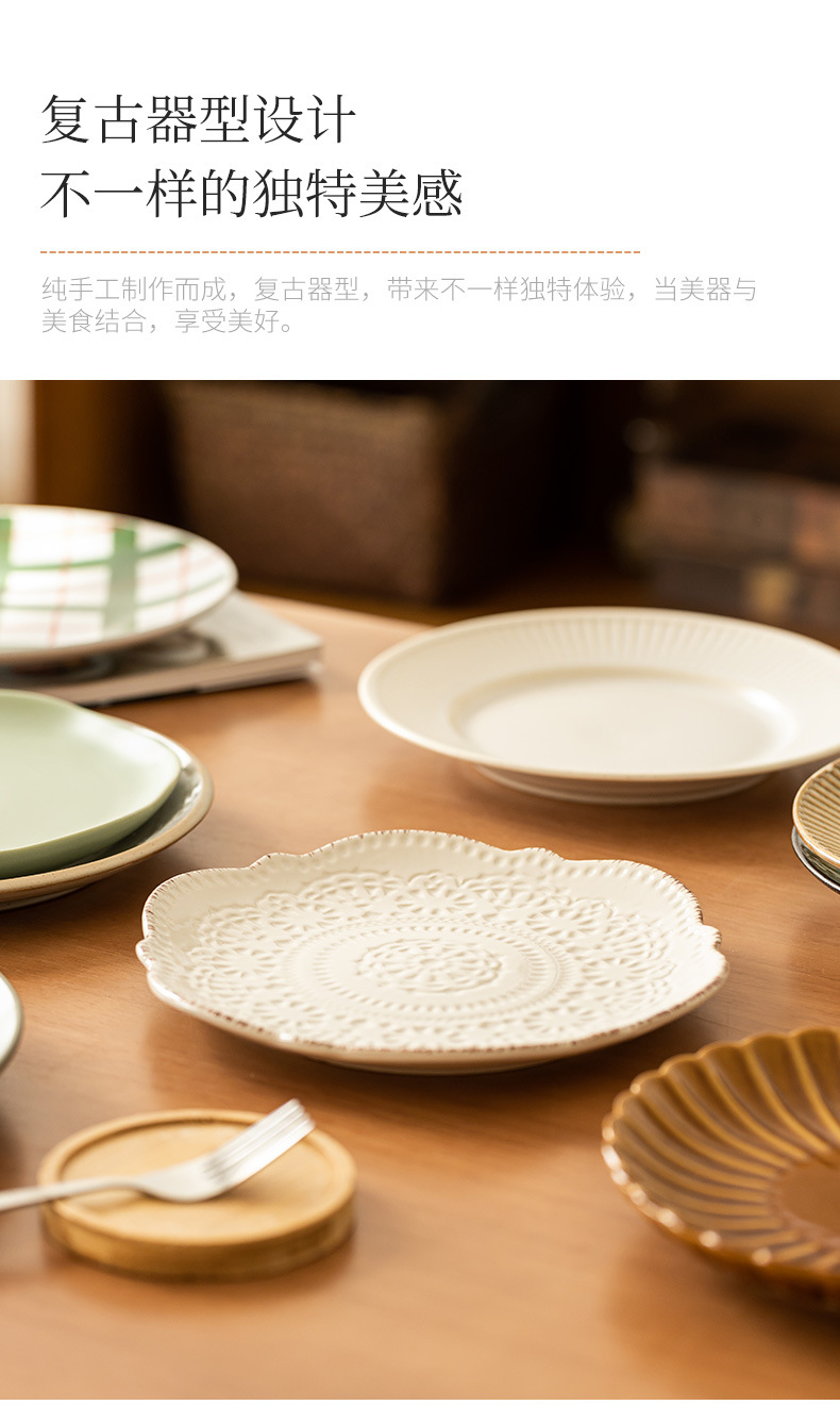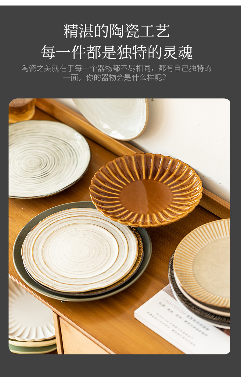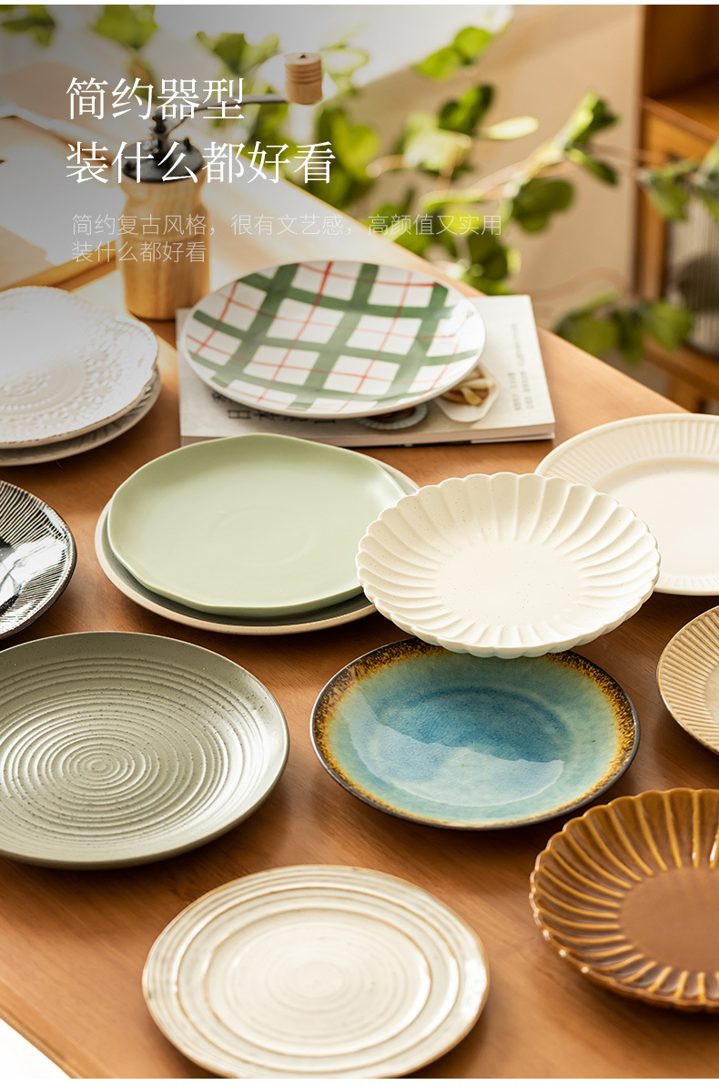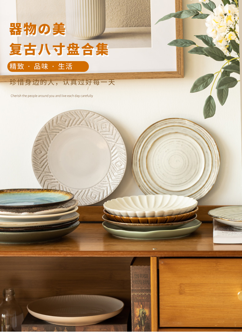 Colección de platos de 8 pulgadas, hogar japonés, plato de comida occidental retro, plato de carne, plato de cerámica, plato de postre, plato al por mayor
