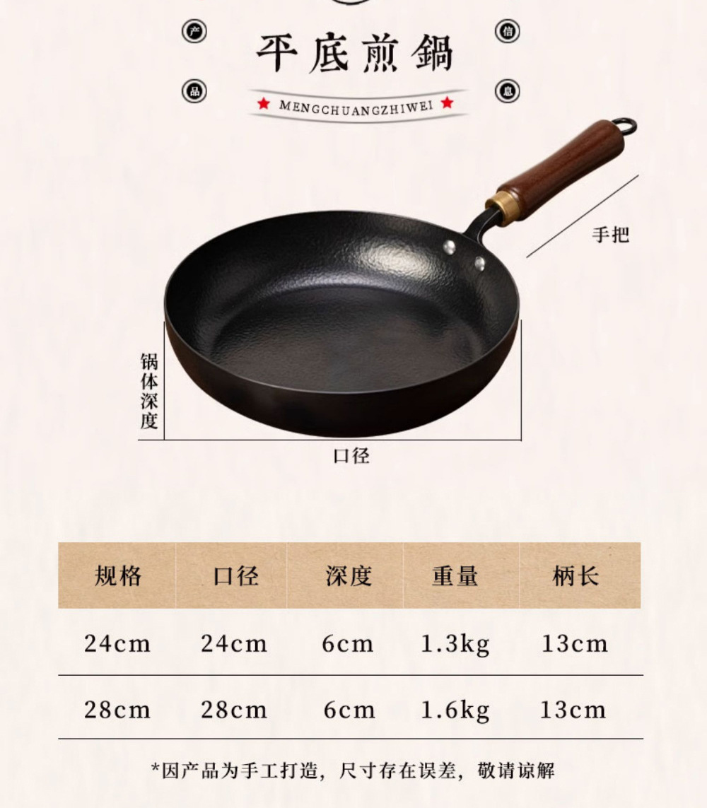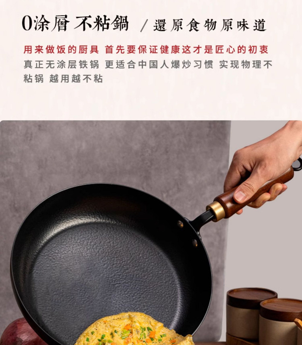 Nueva sartén de hierro tradicional antigua, sartén de forja hecha a mano para el hogar, sartén universal para freír, sartén 0 con revestimiento