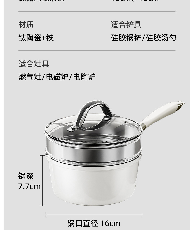 Nueva olla antiadherente de cerámica de cristal de titanio olla de sopa de cerámica doméstica olla de suplemento alimenticio para bebés olla de leche estufa universal olla de leche de cerámica