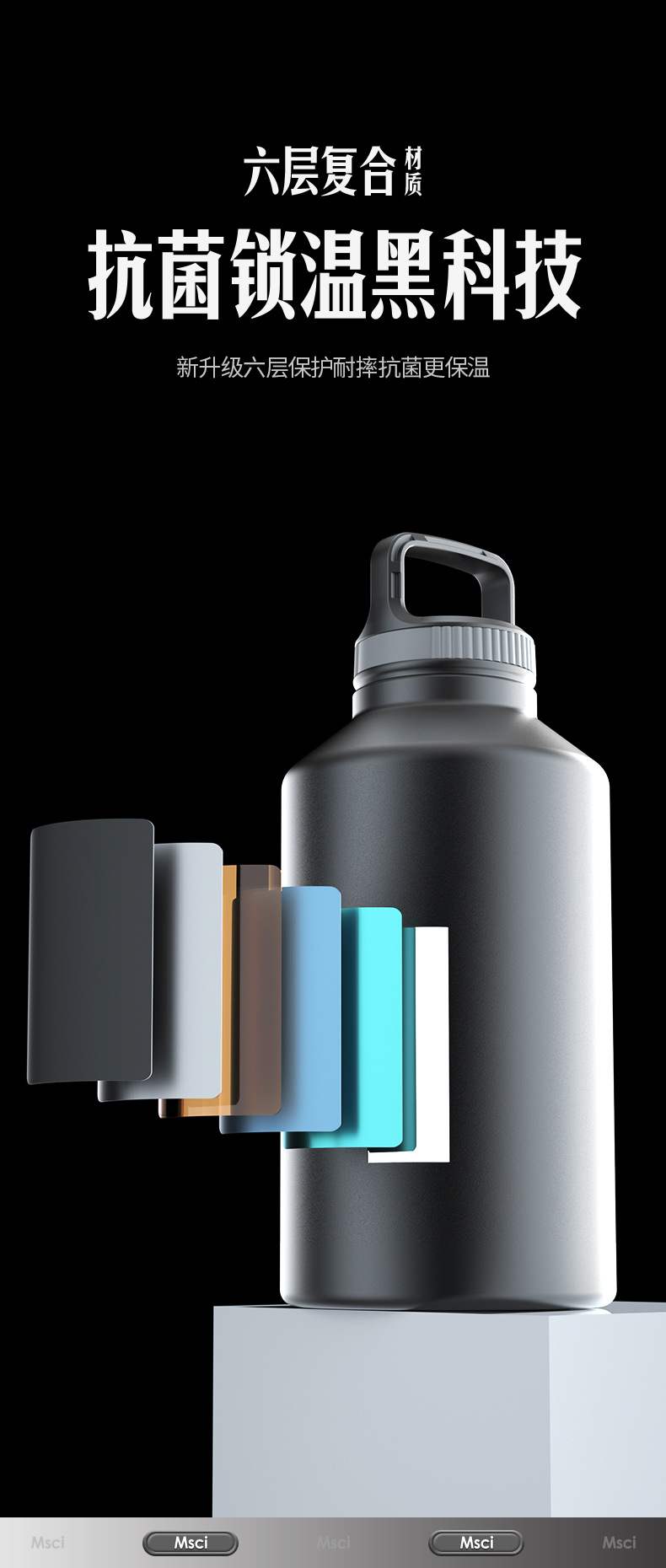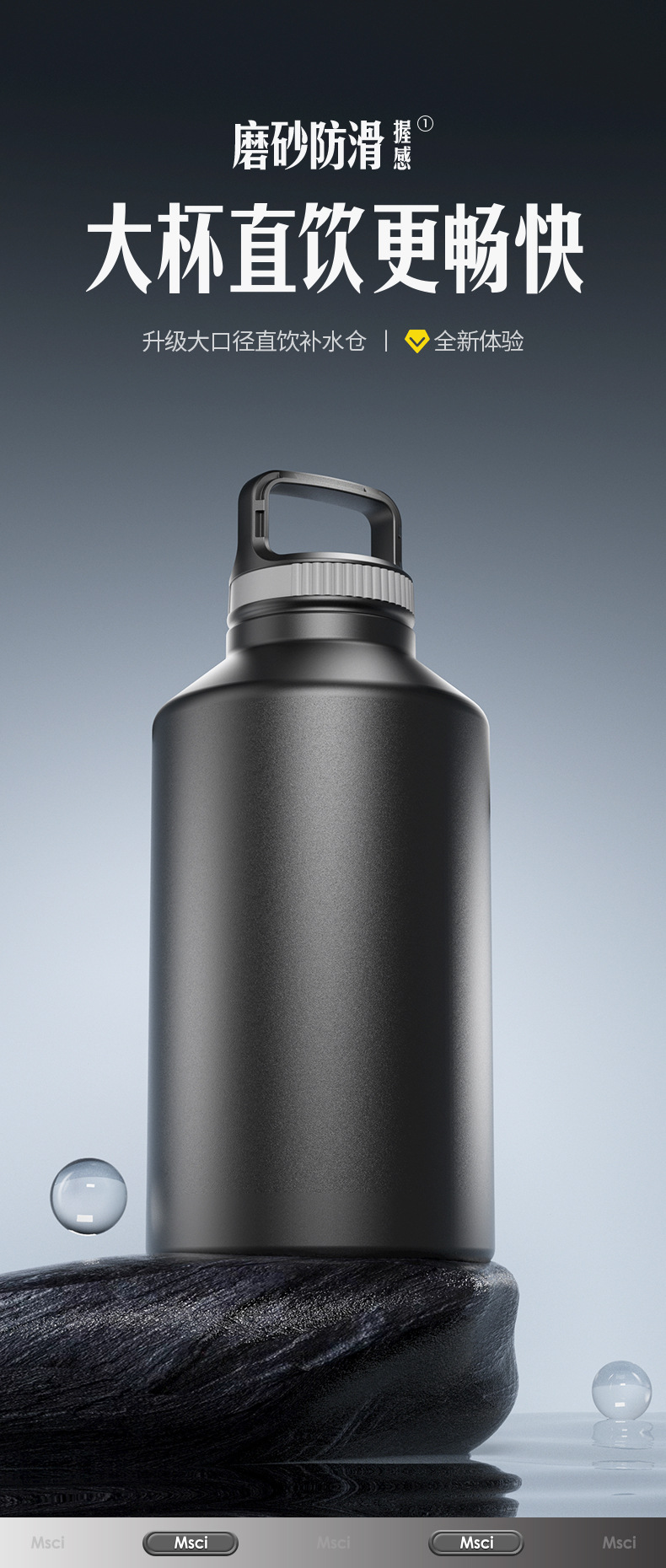 Gran capacidad para adultos deportes taza de agua 304 Acero inoxidable portátil ventosa simple portátil taza de agua fábrica al por mayor