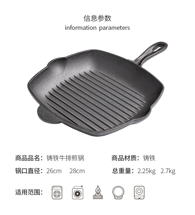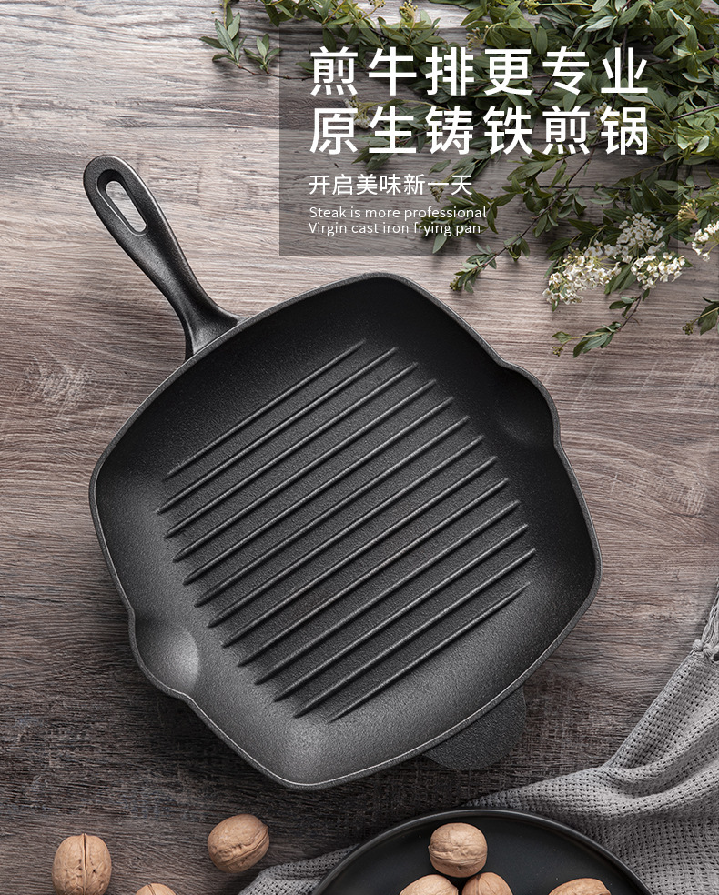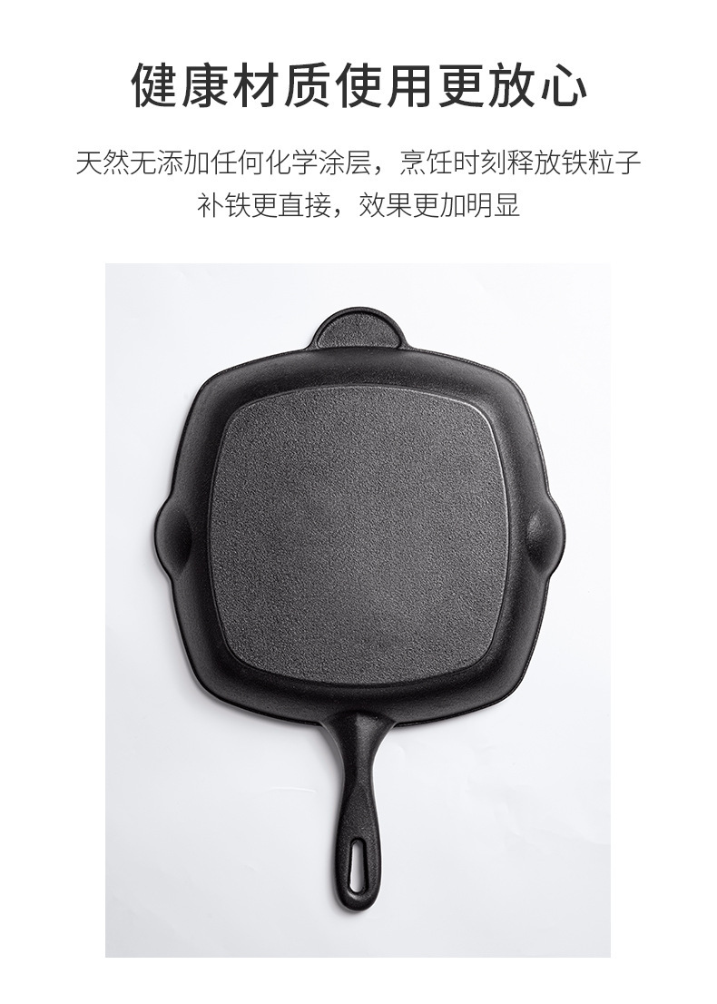 Nueva sartén de filete de hierro fundido a rayas, sartén de hierro fundido sin recubrimiento, estufa universal, sartén antiadherente, sartén gruesa para el hogar