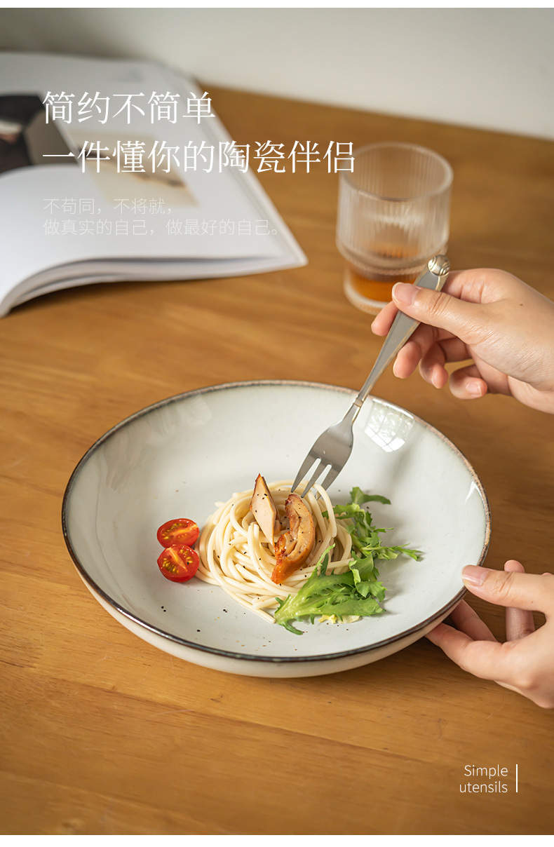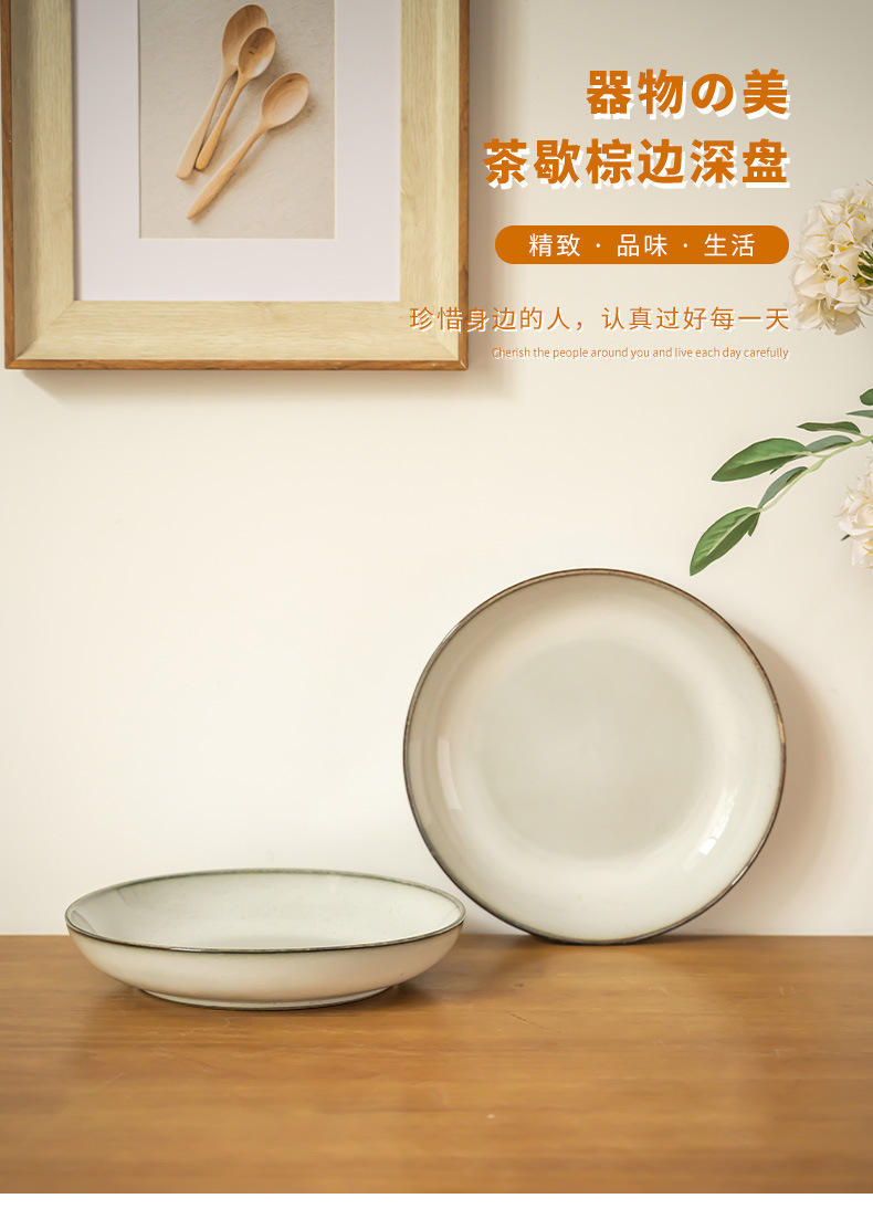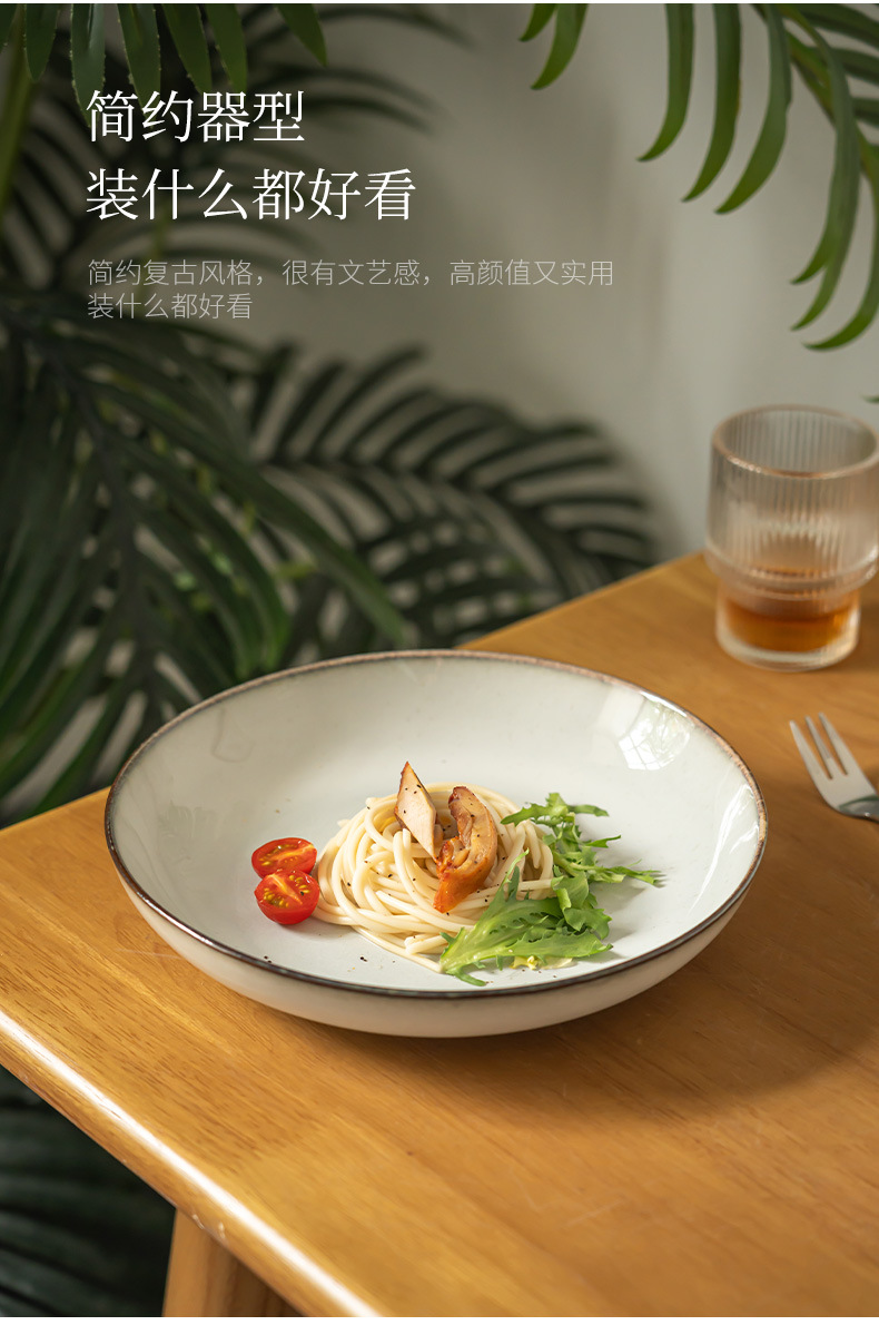 Plato de cerámica profunda retro simple platos caseros con sopa platos de ensalada de frutas platos de restaurante platos de comida occidental platos de pasta