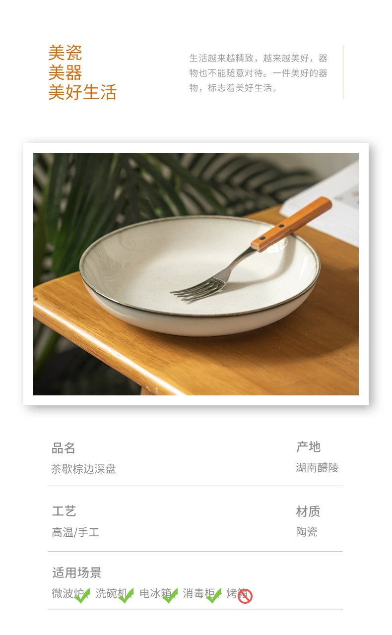 | Color | Descanso de té - borde marrón de disco profundo de 8,1 pulgadas (ligero defecto) |