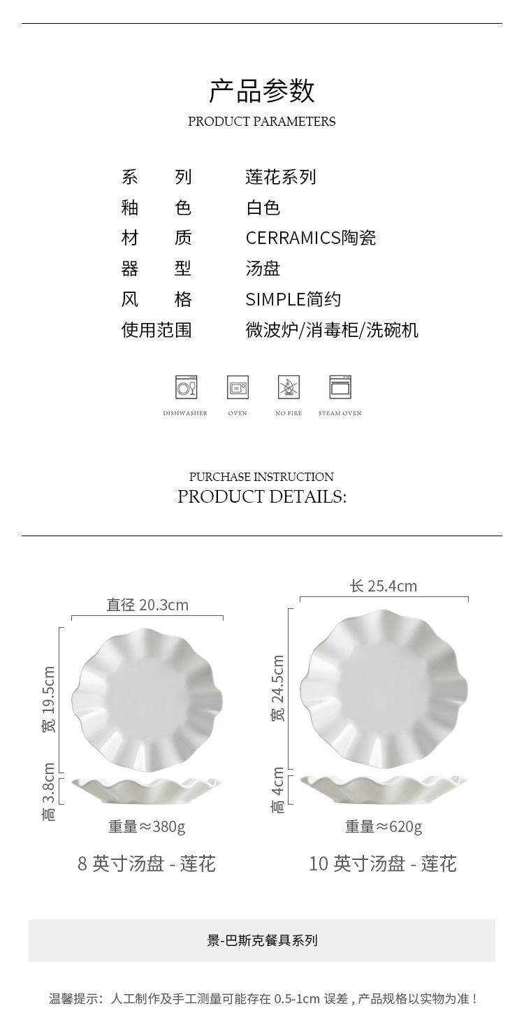 | Color | Plato de sopa de 8 pulgadas - lotus, plato de sopa de 10 pulgadas - Lotus |