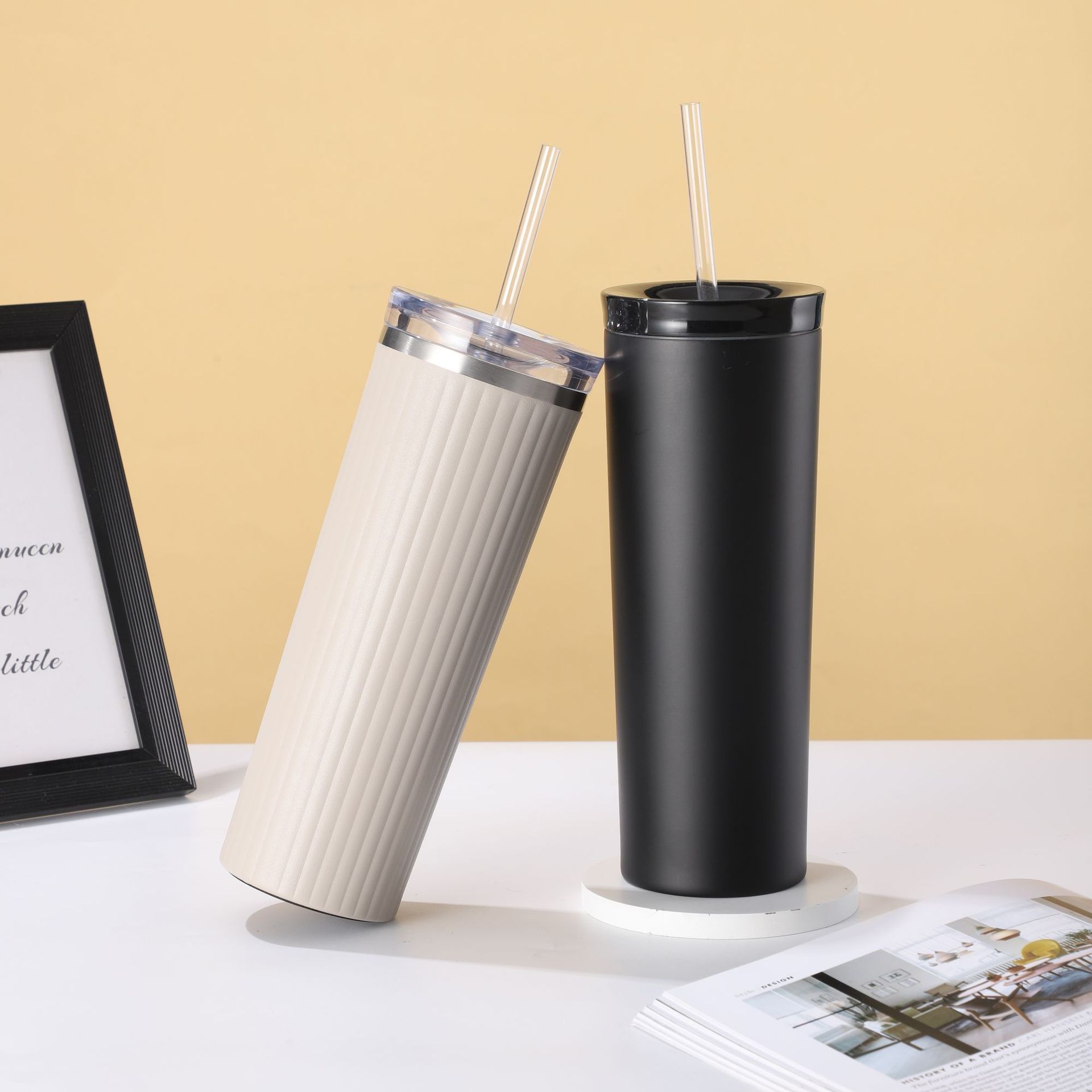 Nueva Oficina taza de café 304 taza de vacío de acero inoxidable taza de agua de paja portátil simple taza recta taza de pareja