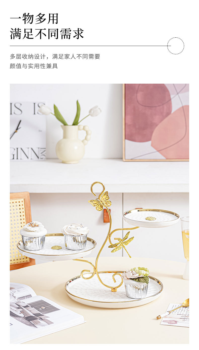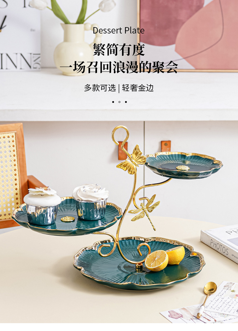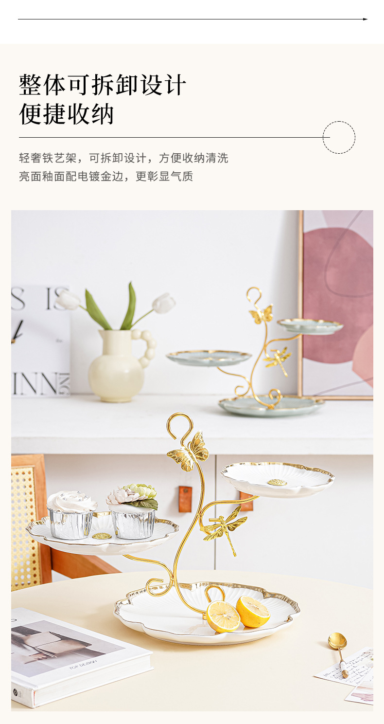 Plato de fruta de lujo ligero sala de estar mesa de café en casa pantalla de aperitivos plato de dulces de múltiples capas estante de aperitivos mesa de postre pantalla de la torta